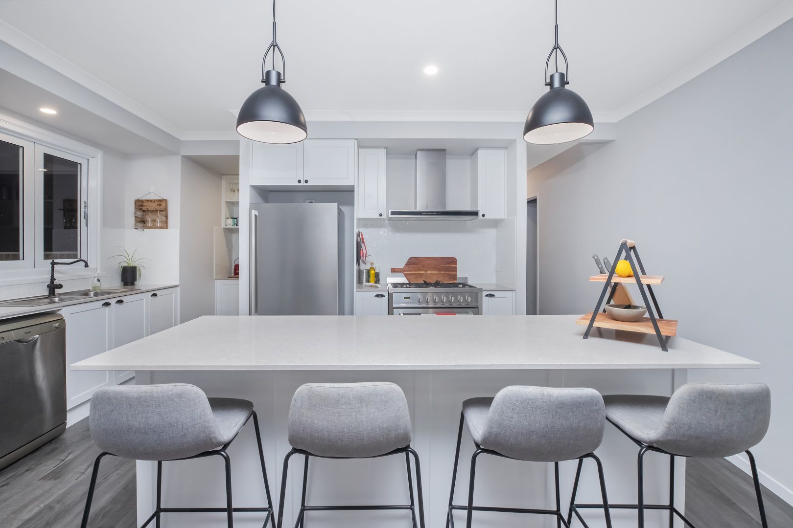 * The Kitchen and butler's pantry has Caesarstone countertops and an over sized island bench. An abundance of sleek white cabinetry plus superior quality appliances makes this a stunning first impression.