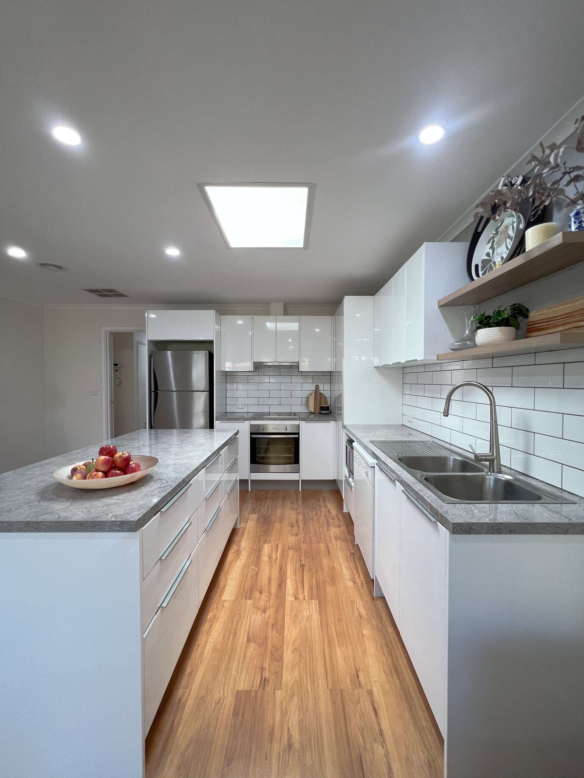 • Newly renovated kitchen with island bench and electric cooktop and oven