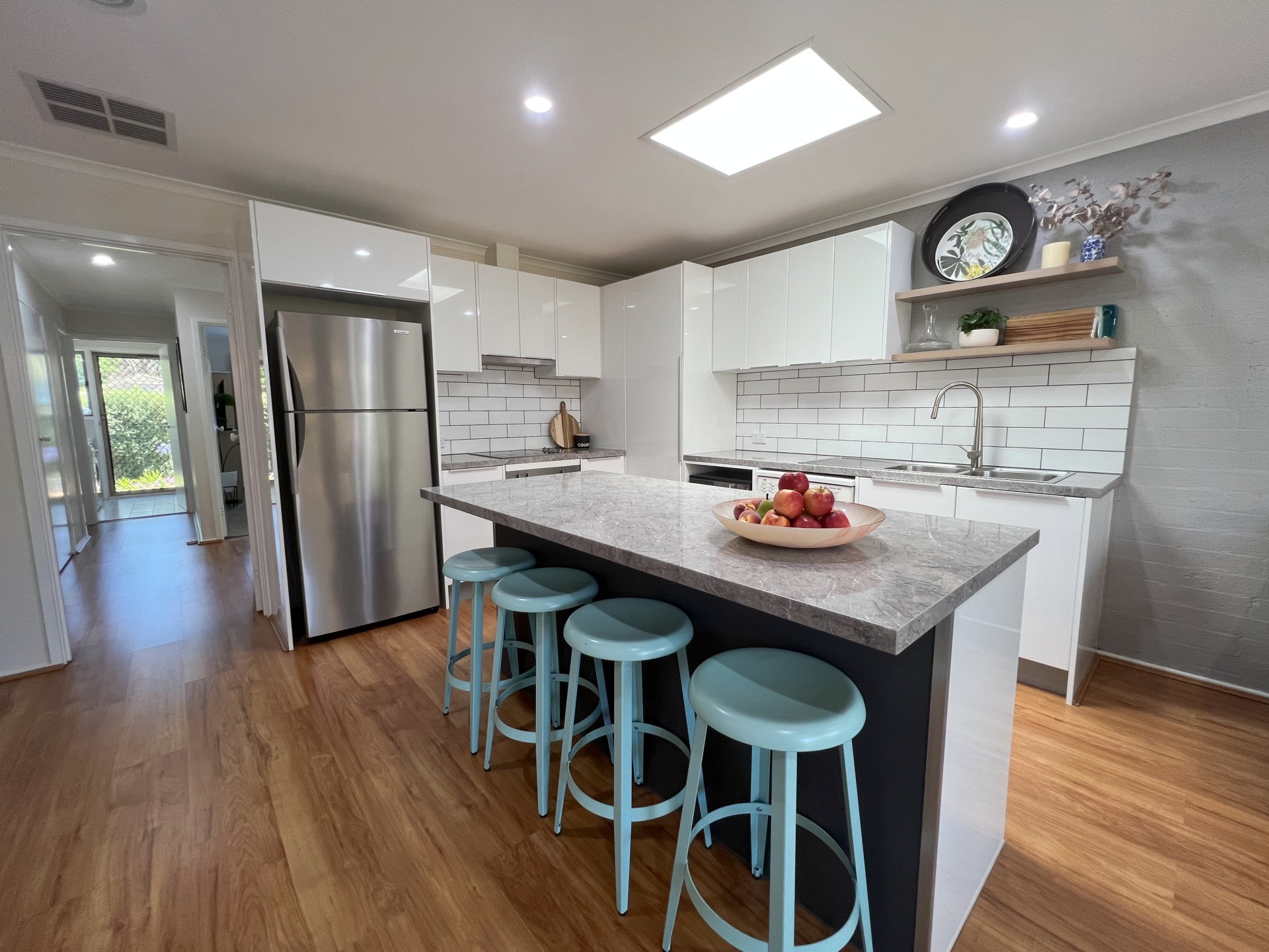 The heart of this home is the beautifully renovated kitchen, showcasing the latest in design and functionality, including the generously sized over-hanging island bench. The updated bathroom provides further elegance to the home, with great accessibility, and his and her double vanity for the ultimate in luxury. Rest easy knowing your newly installed hot water system will keep those showers warm and inviting.