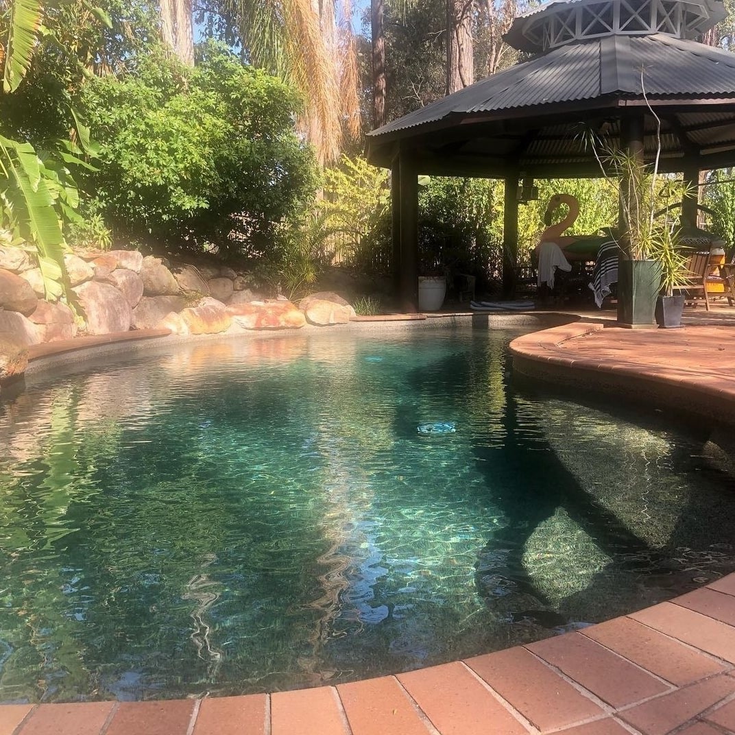Outside you will wander through gardens that will take your breath away. There are many plantings with an abundance of roses and other cottage plants, water features and open grassy areas for children to play on. The property is fully fenced and divided up into several smaller areas designed to separate different features of the property. Inground salt water pool with huge poolside pergola for entertaining.