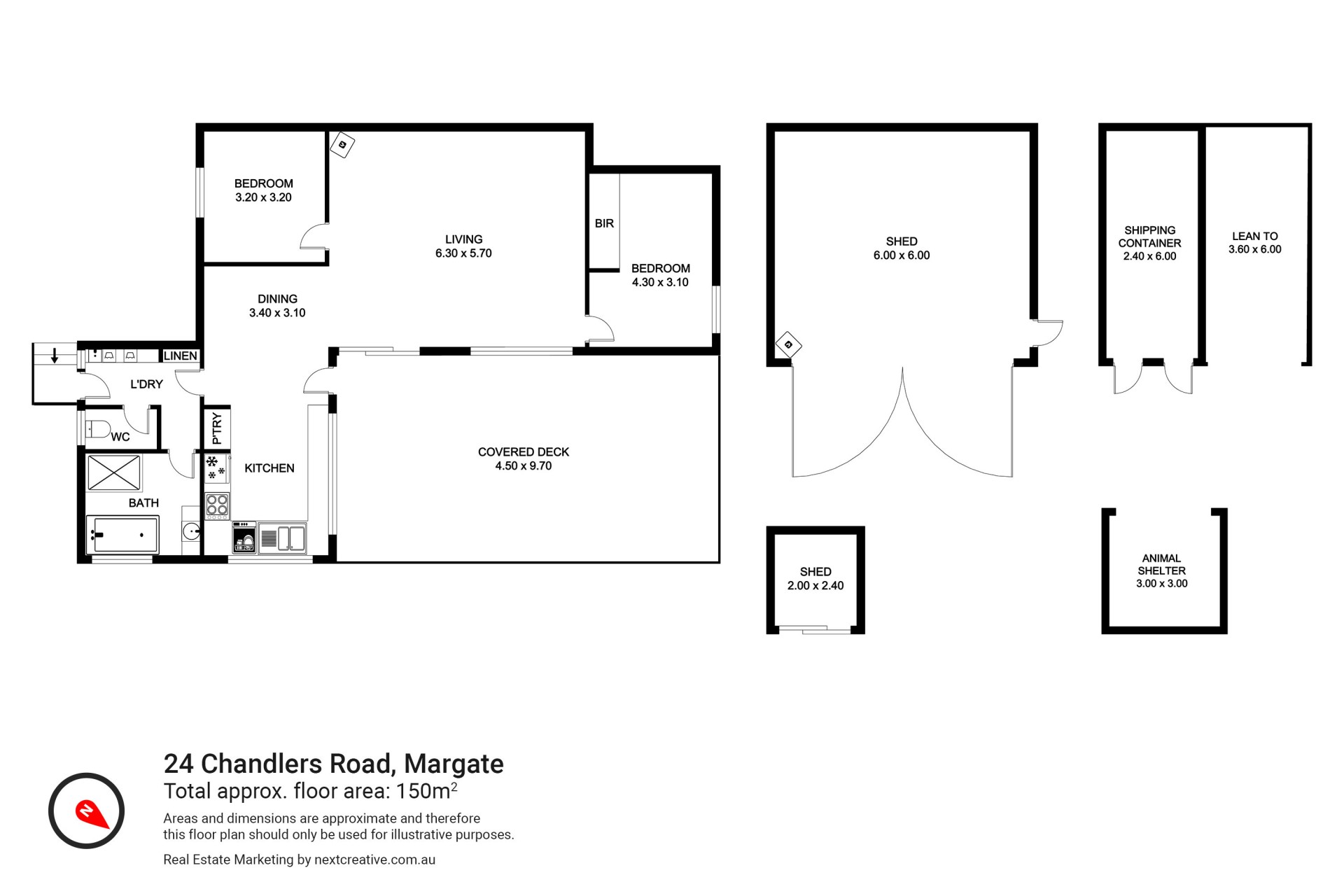Included in the sale is a 20ft container with large lean-to area, a 6x6m shed with its own pot belly heater, a small wood storage shed, greenhouse, animal shelter and cubby house.