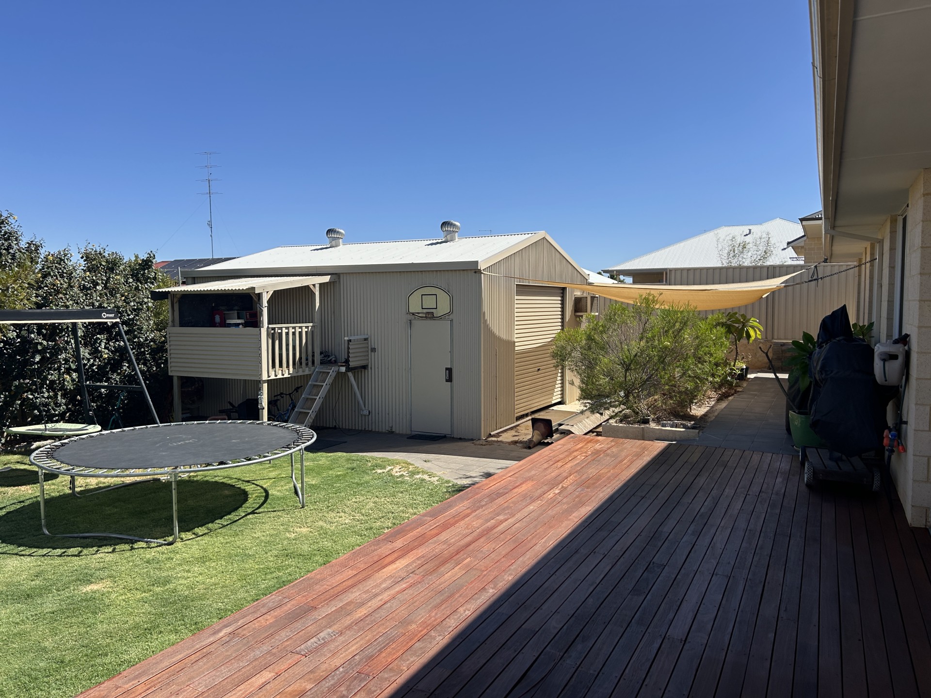 The fully fenced and secure property is 777m2 with a 2nd concrete dive side access via remote electric gate allowing for caravan/boat parking and giving external access to the back yard, outdoor living area with Jarrah deck, grassed area and 42m2 7x6x3m shed.