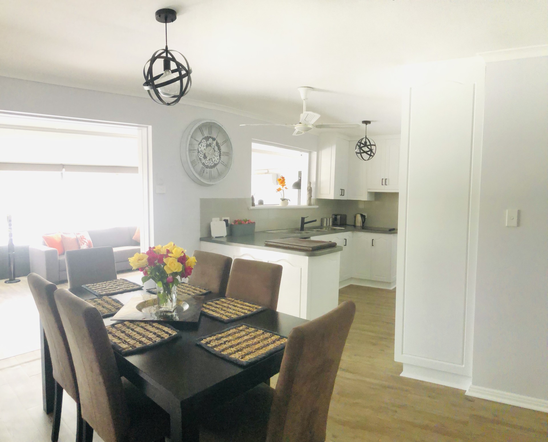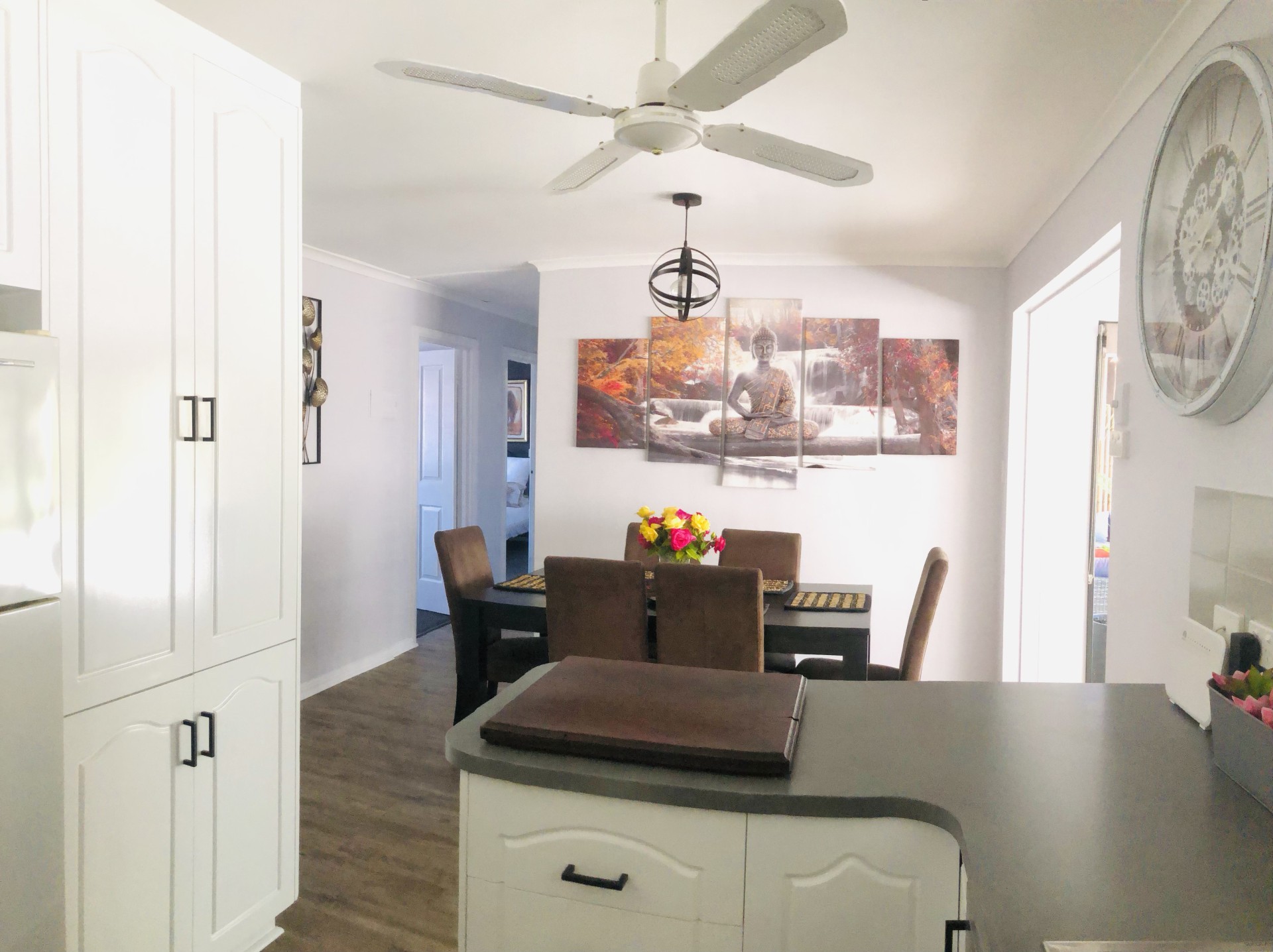 Comprising of 4 bedrooms, 3 with built in robes and all have ceiling fans, the kitchen has ample cupboard and bench space overlooking the dining/meals area which then leads into a large living room.