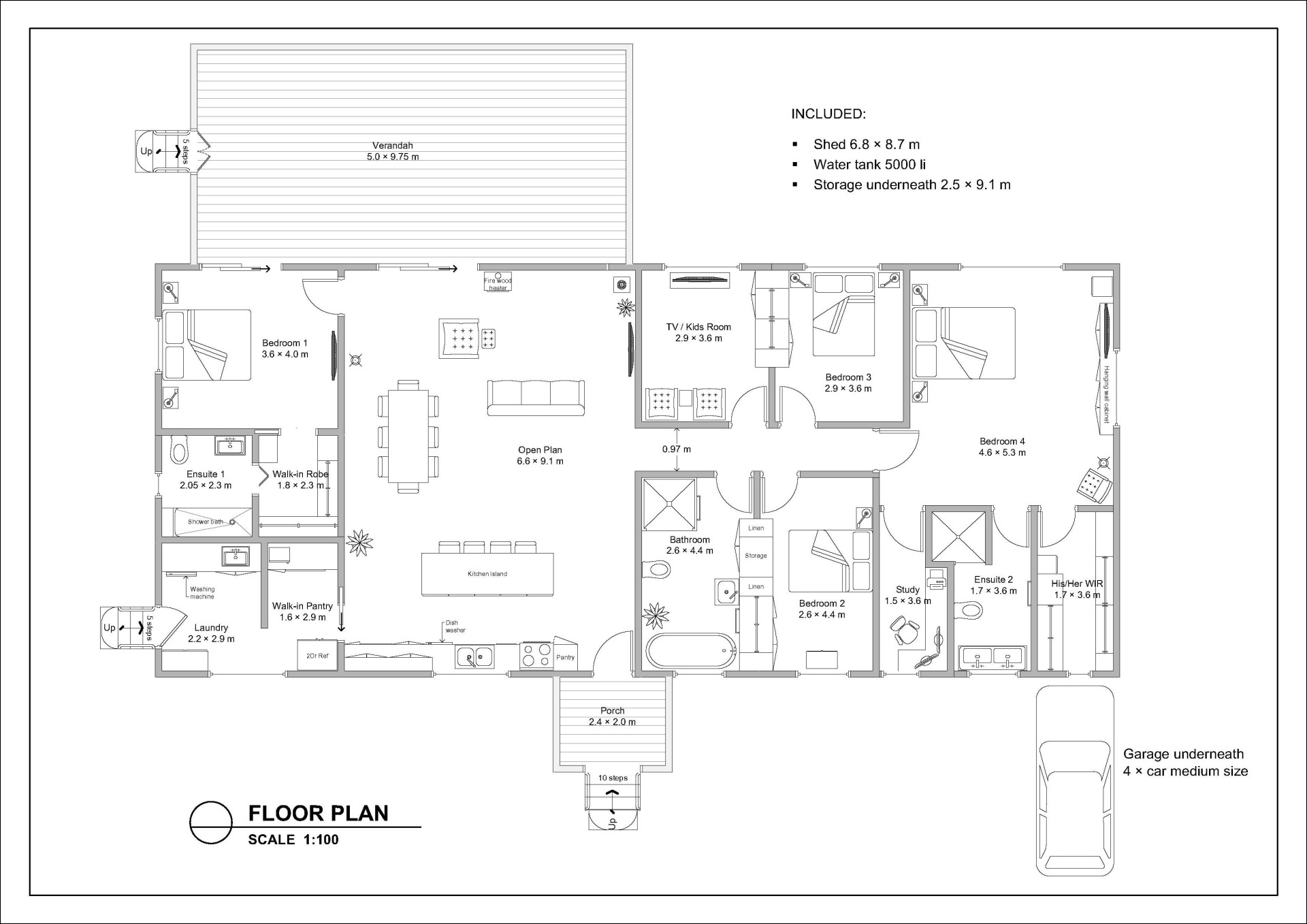 Underneath has parking for 4 cars along with ample storage. Double bay shed 7m x 9m room for all the toys. Established fruit trees. Fully fenced with low maintenance gardens. Security cameras solar powered entrance gates. Wisteria arbour in courtyard raised garden beds and 5000ltr water tank.