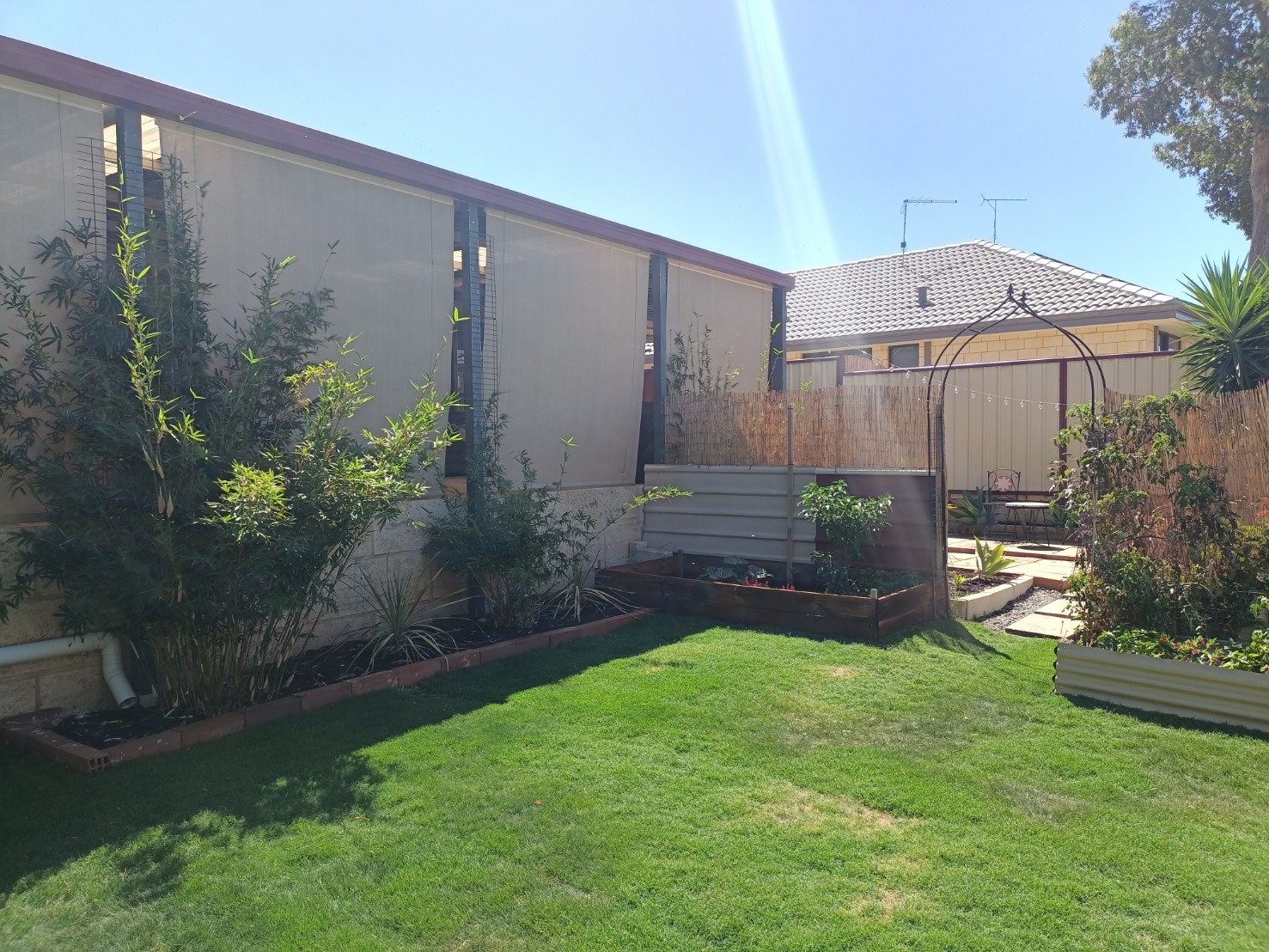Double open carport, lots of room for the boat/caravan, with side access to rear shed/workshop