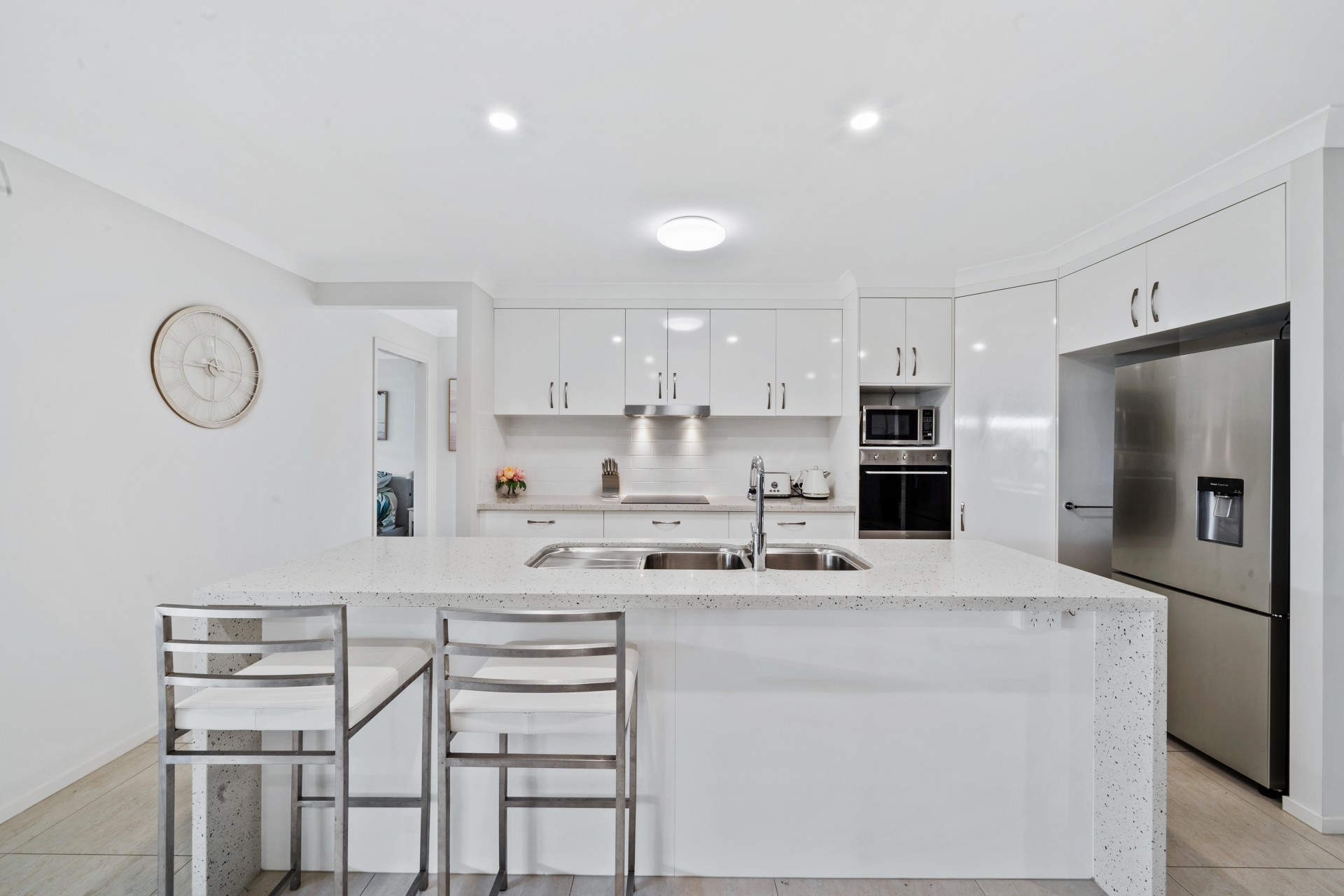 Gourmet kitchen featuring stone benchtops and undermount sink.