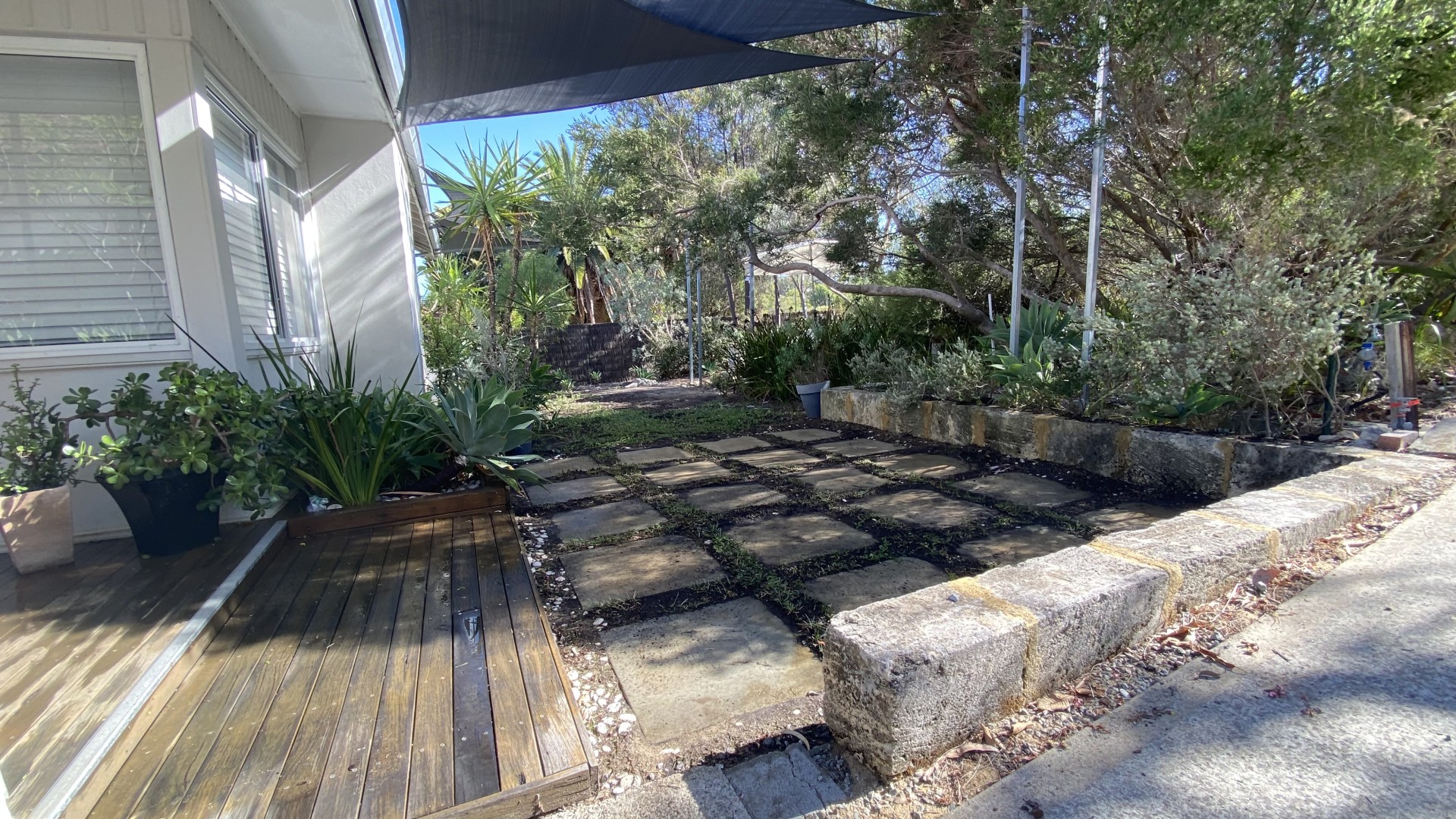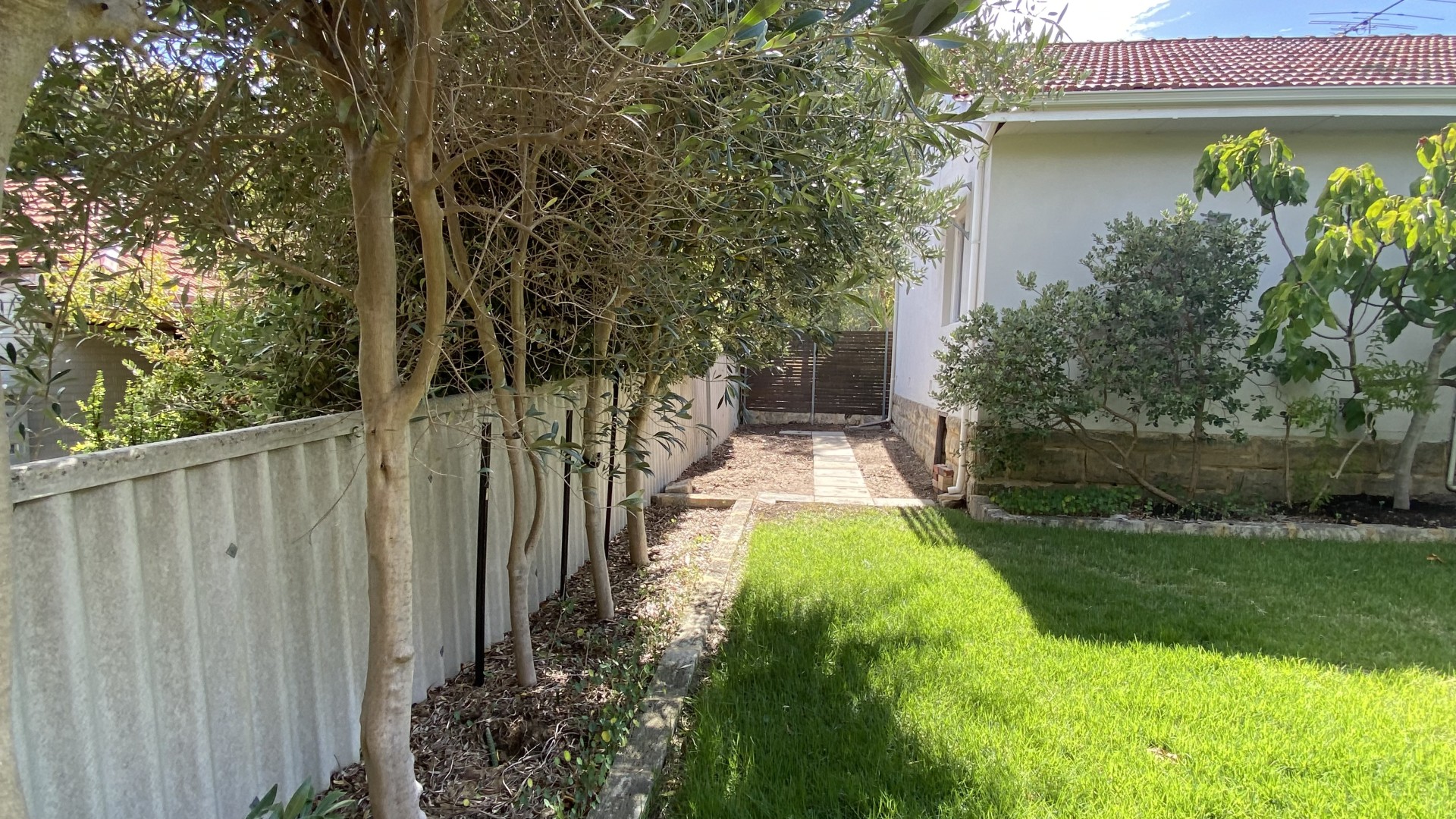 Back Garden - lawn, veggie patches, fruits trees; olives, limes, fig, pink grapefruit, mulberry, feijoa, quince, macadamia, bay tree