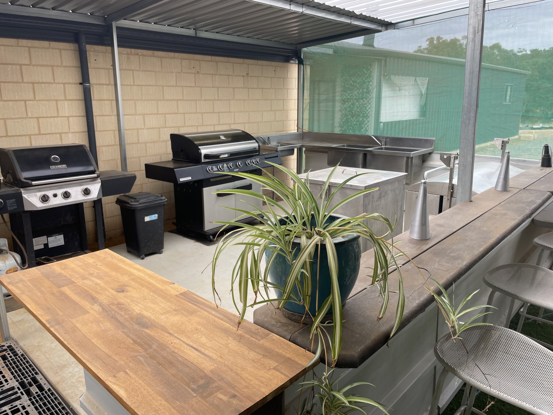 To the rear of the house is a sizable undercover patio area perfect for entertaining. There is so much space under this patio it boasts two 20 foot shipping containers, a huge greenhouse, a large garden storage area as well as a great outdoor BBQ area. Set up your tv or projector and you've got your own pub style setting in the convenience of your own back yard.