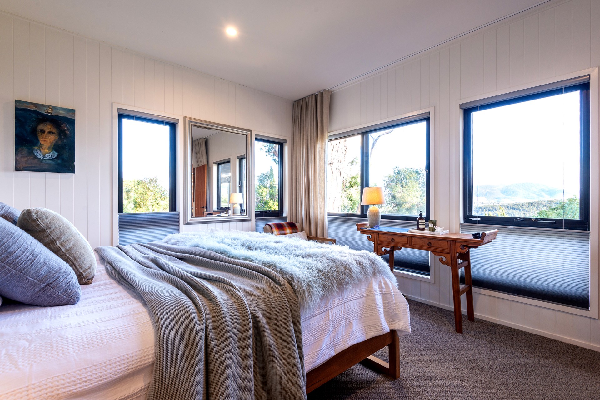 The rooms all have up-down blinds so you get both privacy and views. The verandah has electric blinds so in the summer you can have just the right level of shade you want.