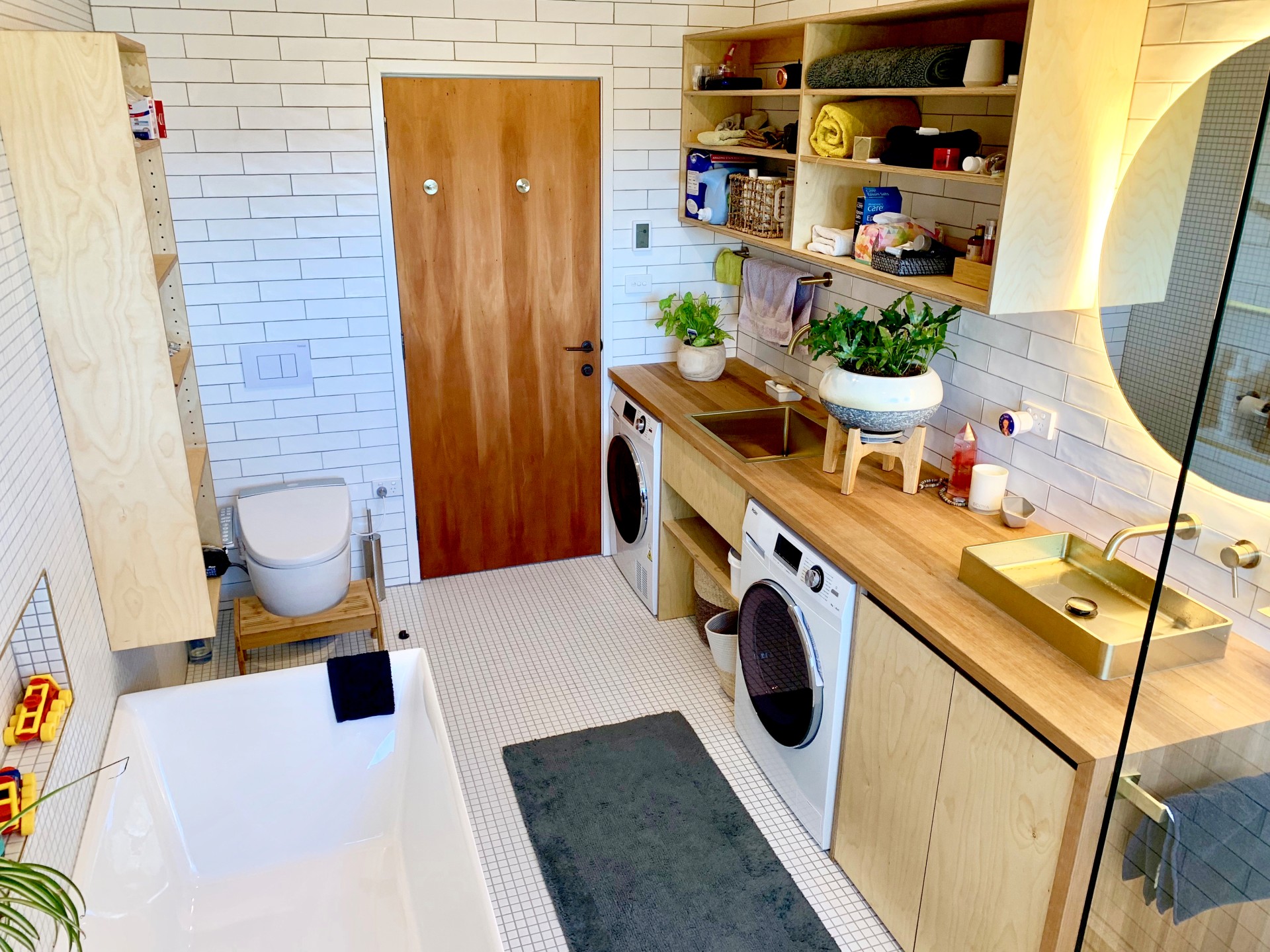 Cupboards and drawers throughout are custom made with marine ply. The kitchen is well designed, with gas stove, dishwasher and pantry. The water is filtered through a high quality filter, and can be either room temperature or instant hot. The bathrooms have toilets complete with modern Japanese seats - heated so very comfy, and there is a shower and separate large bathtub. The blinds on all windows are two-way so you can lower them from the top or raise them from the bottom, affording maximum privacy and control over what you see. The ceilings are extra high - 2.7 metres - giving a feeling of spaciousness throughout.