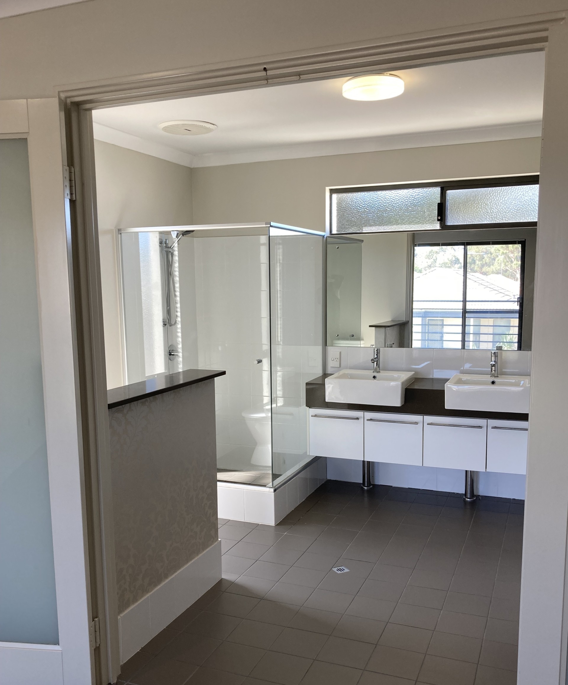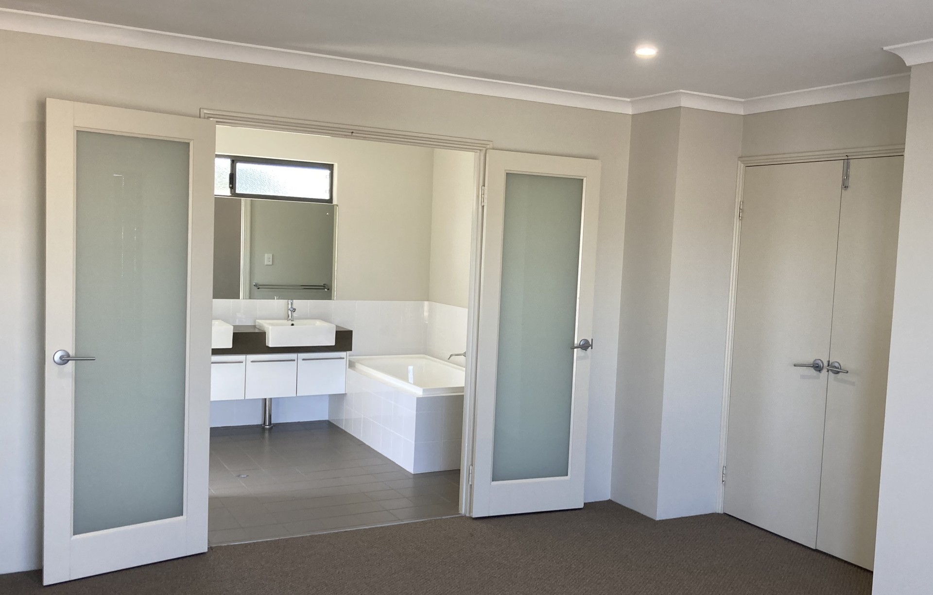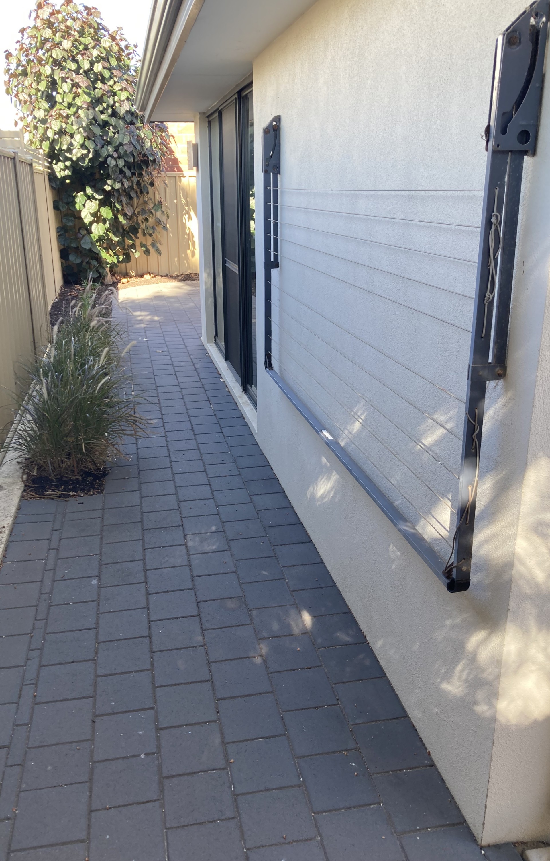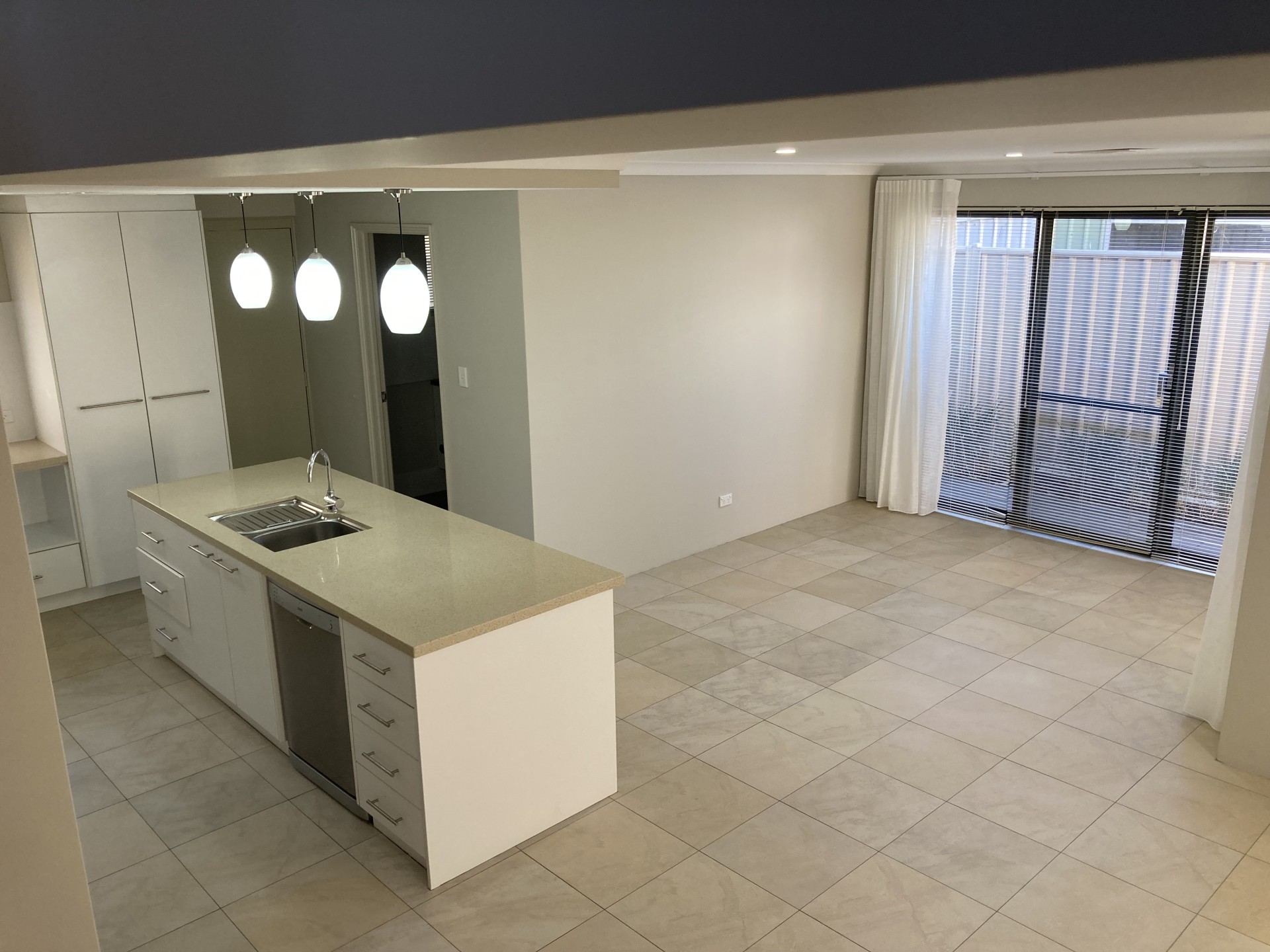 Off the Entry is a king-size Bedroom with WIR and Ensuite. This room has glass sliding door access to an outside paved area.