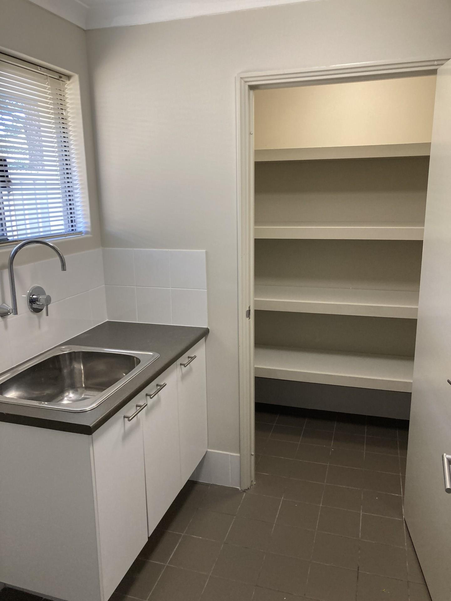The Laundry is adjacent to the Kitchen and has extra counter/storage space so can function as a scullery. The Laundry includes a large Walk-in Linien.