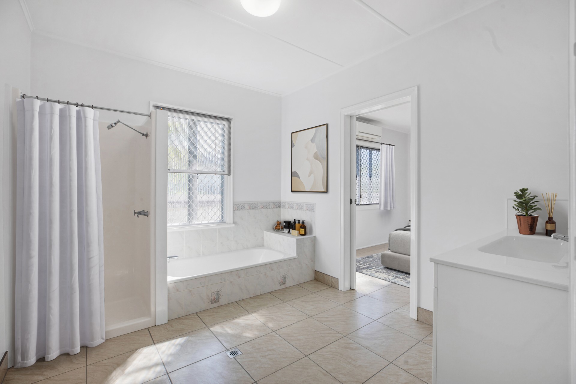 All four spacious bedrooms feature air conditioning and ceiling fans to combat the warm Queensland climate, with the master bedroom boasting built-in wardrobes and convenient ensuite access to the newly renovated bathroom.