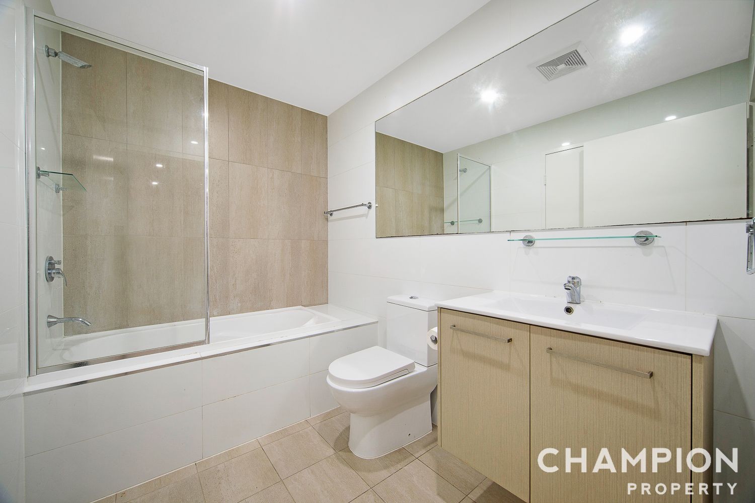 - Modern main bathroom with floor to ceiling tiles