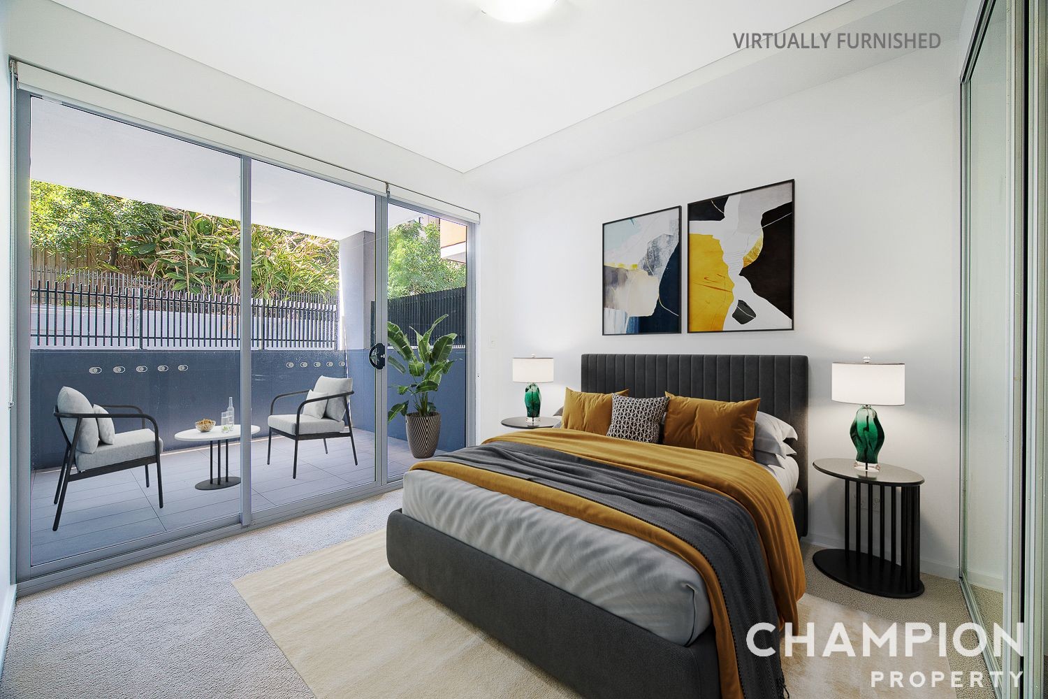 - Decent bedroom with mirror built-in wardrobe facing balcony