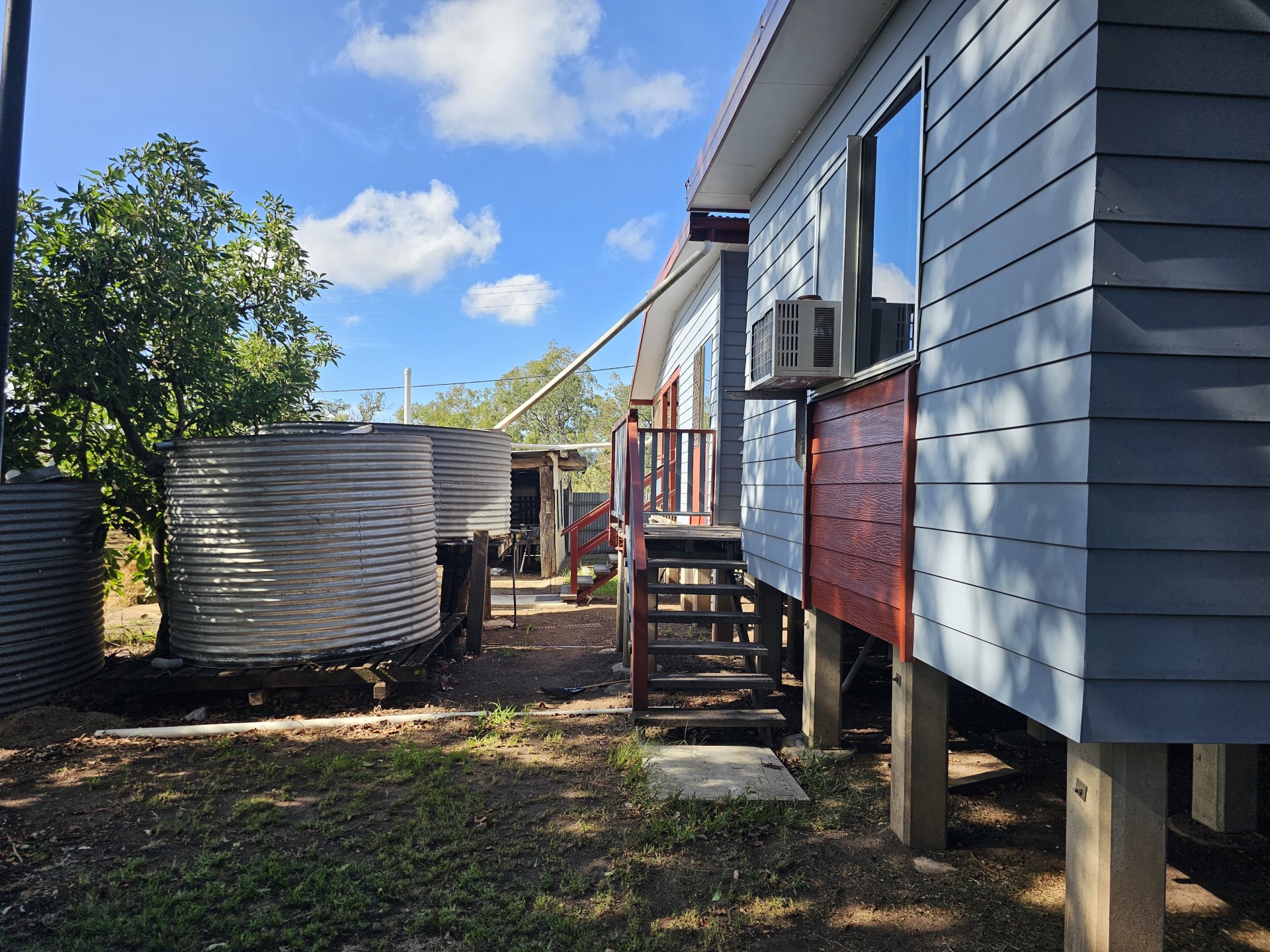 Water Security: Four water tanks ensure a reliable water supply for household use and gardening needs.