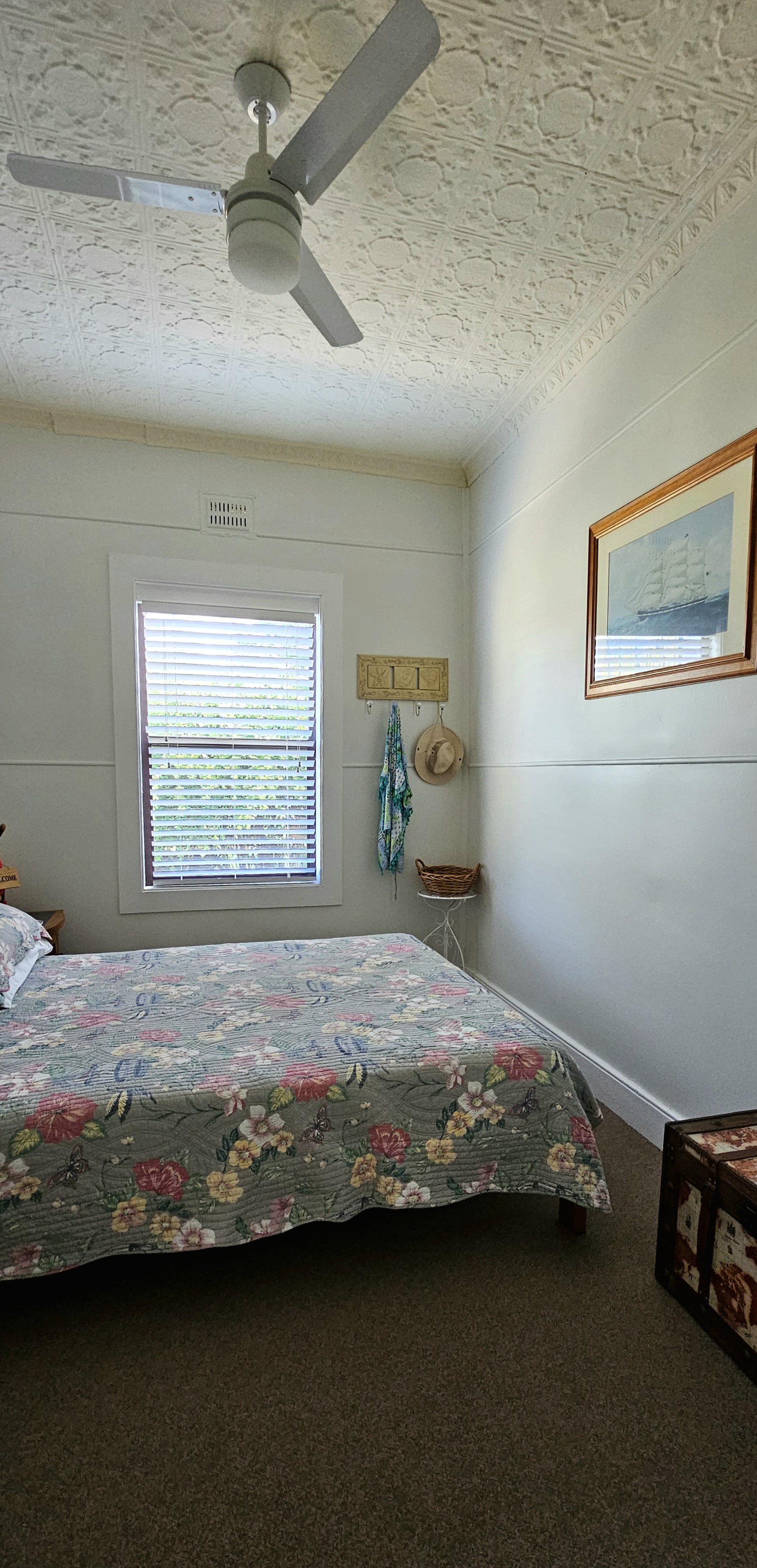 This charming home consists of two large bedrooms, the master with walk in robe. Both have new carpets and ceiling fans. Bedroom 2 and also the lounge, have a bonus of beautiful pressed metal ceilings.