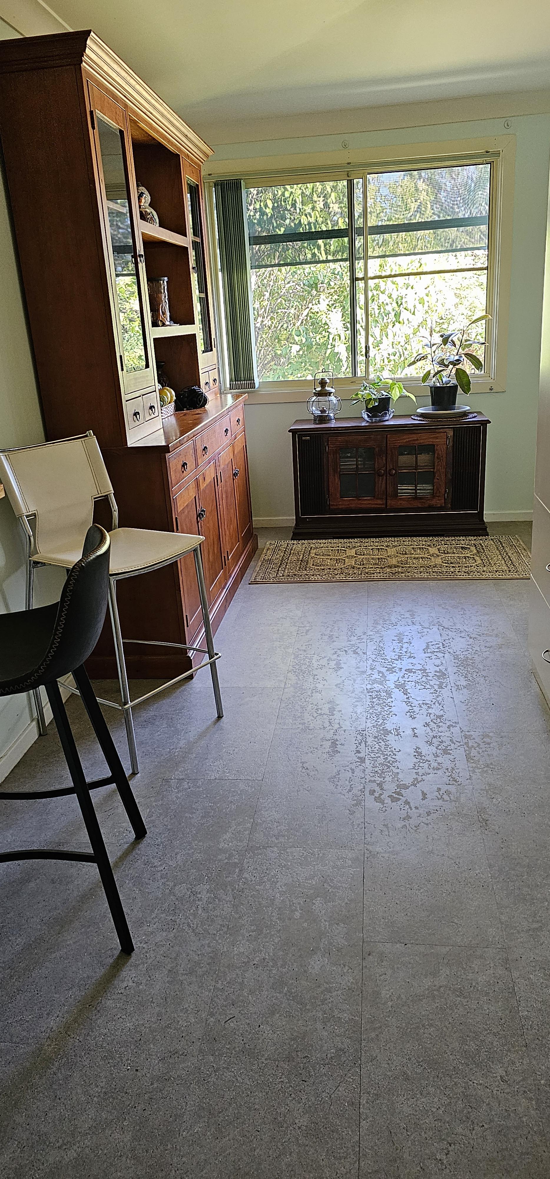 The delightful kitchen has been totally renovated to include ample cupboard space, pantry, new flooring, Induction cook top with range hood, large built-in electric oven and new 2 drawer dishwasher. A Rainwater tap is conveniently connected to the kitchen sink.