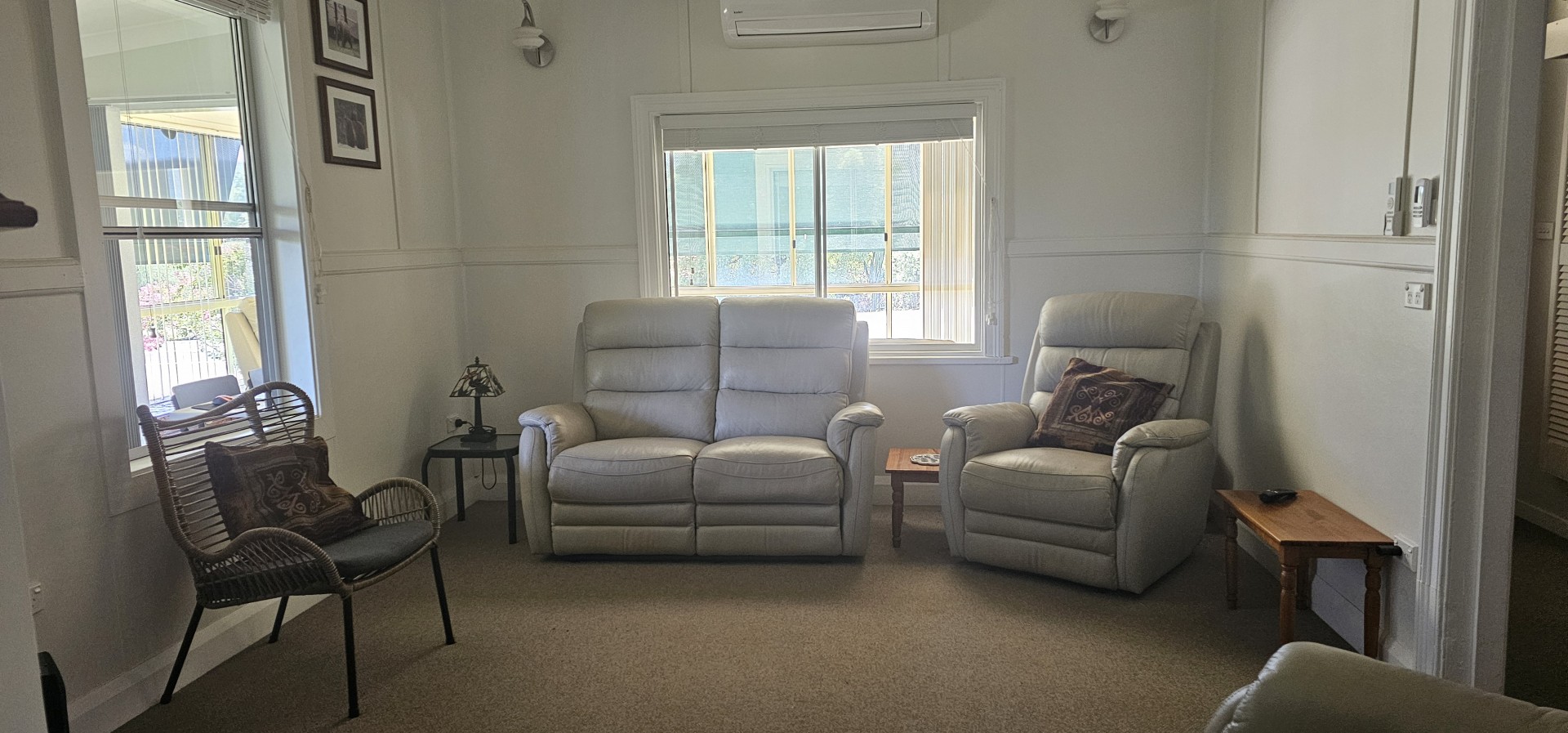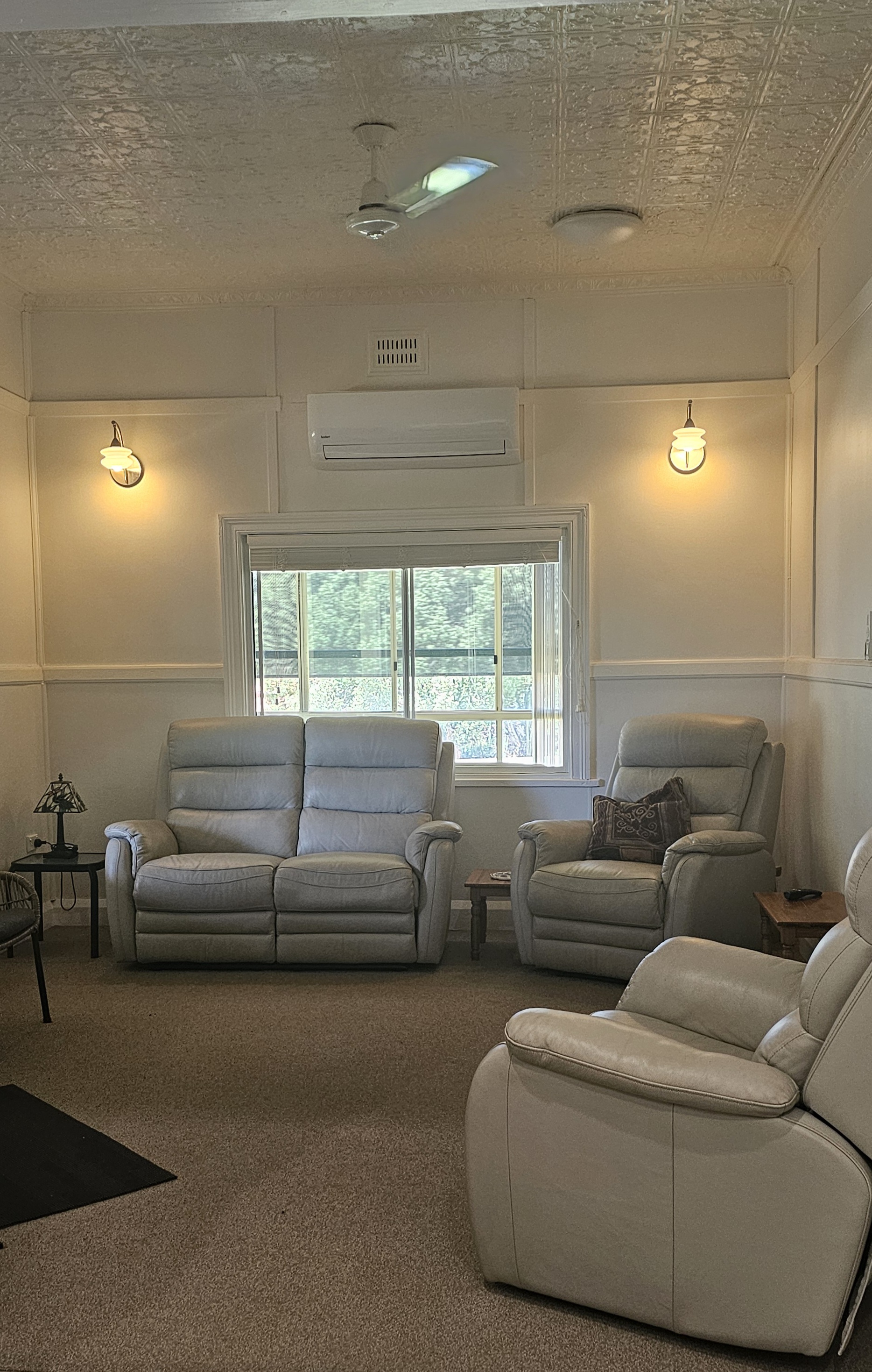 The lounge room itself, also newly carpeted, features a built-in fan forced log heater and reverse cycle air conditioner.