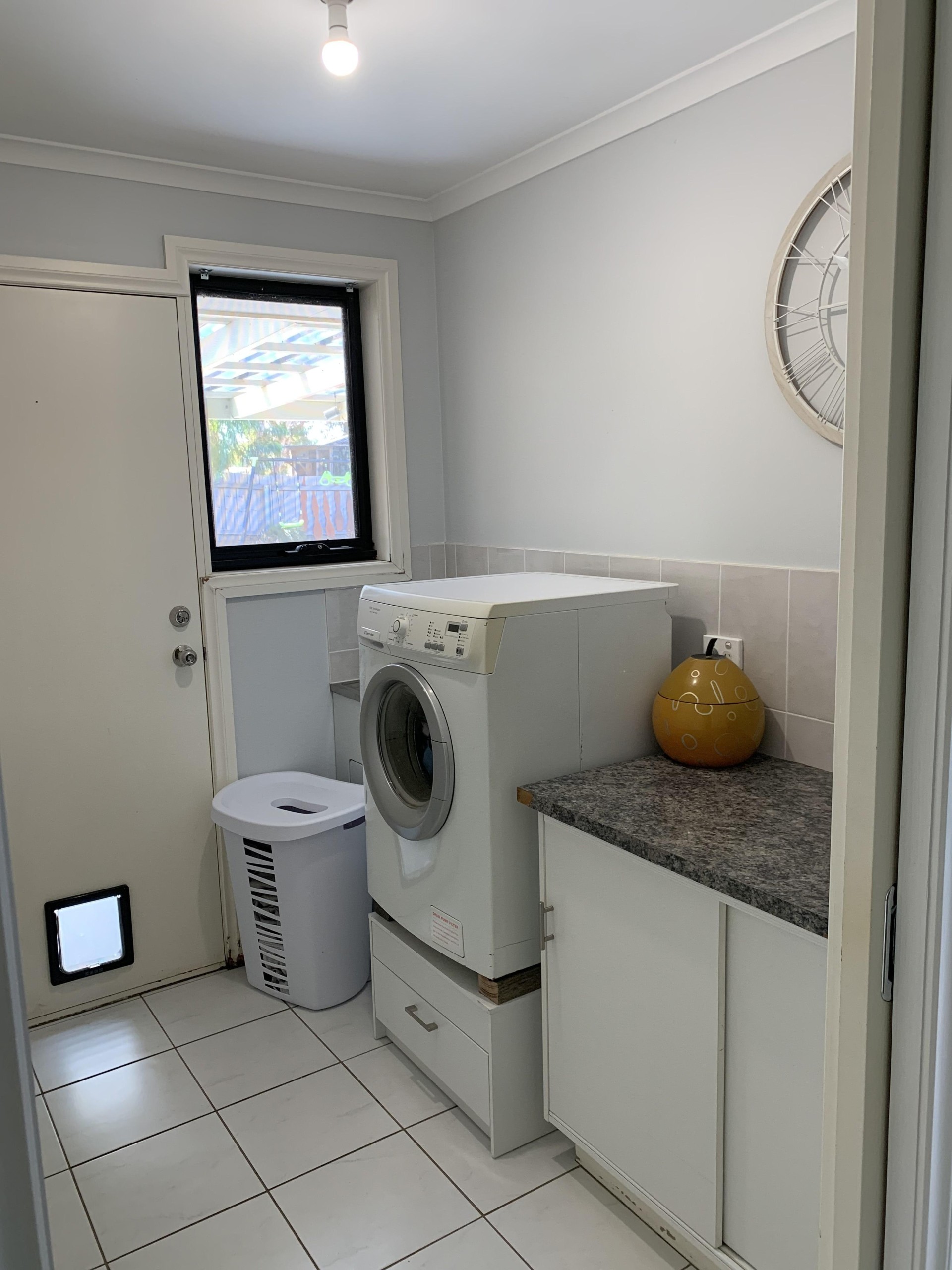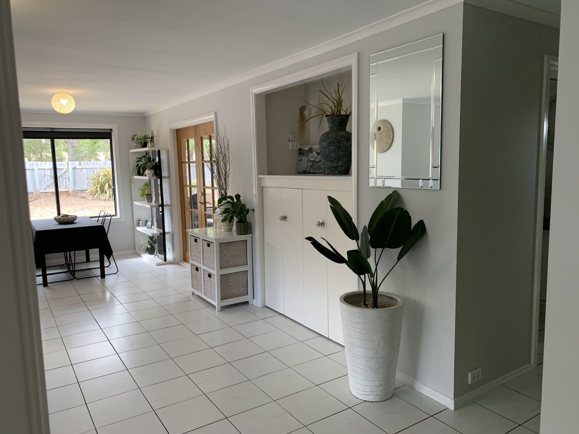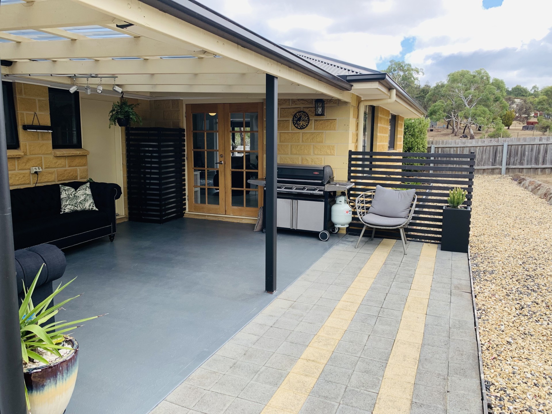 With double french doors that open to a covered outdoor BBQ area and fenced off yard to keep the young ones or small pets safe and secure.