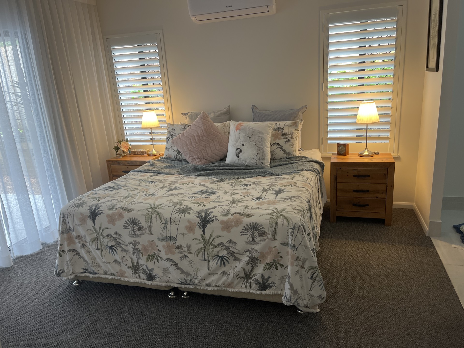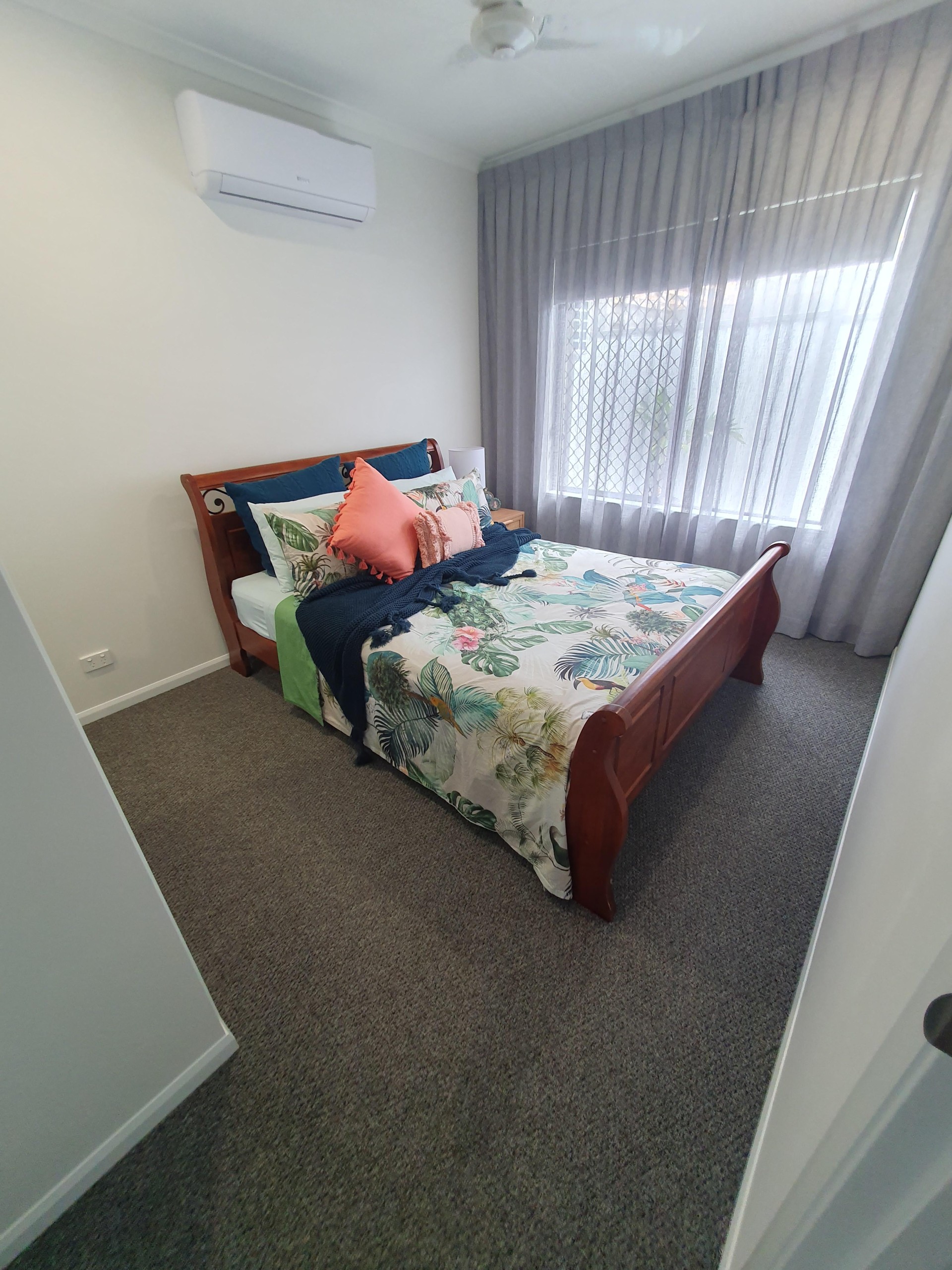 FEATURES-NBN connected, 8.8Kw Solar System, Double garage. Modern style kitchen with stone benches, gas cooktop & electric fan forced oven, dishwasher, walk in pantry and plenty of storage space, Aircon and fans to all rooms, Master bedroom has walk in ensuite with dual stone top vanities, shower and toilet plus walk in robe. Office nook adjacent to hallway across from theatre room, laundry has under bench for dryer and washer, 600mm floor tiles throughout except bedrooms which are carpeted, neutral colour schemes. Professionally made ceiling to floor curtains on all windows, blinds and some shutters. Crimsafe security screen to front door and security screens on all windows and doors, extra-large patio with ceiling fans leading into pool area, pool has spa jets and 2 lights with remote operation. Fully landscaped gardens with veg garden straight off patio and lawn area with small garden shed and separate pool pump house. Colourbond fence with side gates both sides, no rear neighbours which is a bonus!
