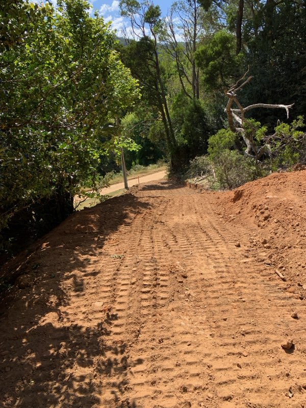 There is water and power at the front of the block and access to the block is good. A driveway has been cut in as has a level area for the start of building or shed work. A little further up the block there is another levelled spot.