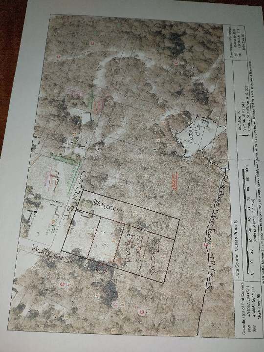 The block is about 20 metres wide at the street and goes back about 100 metres. The front half is largely cleared with the back half thick scrub and bush.