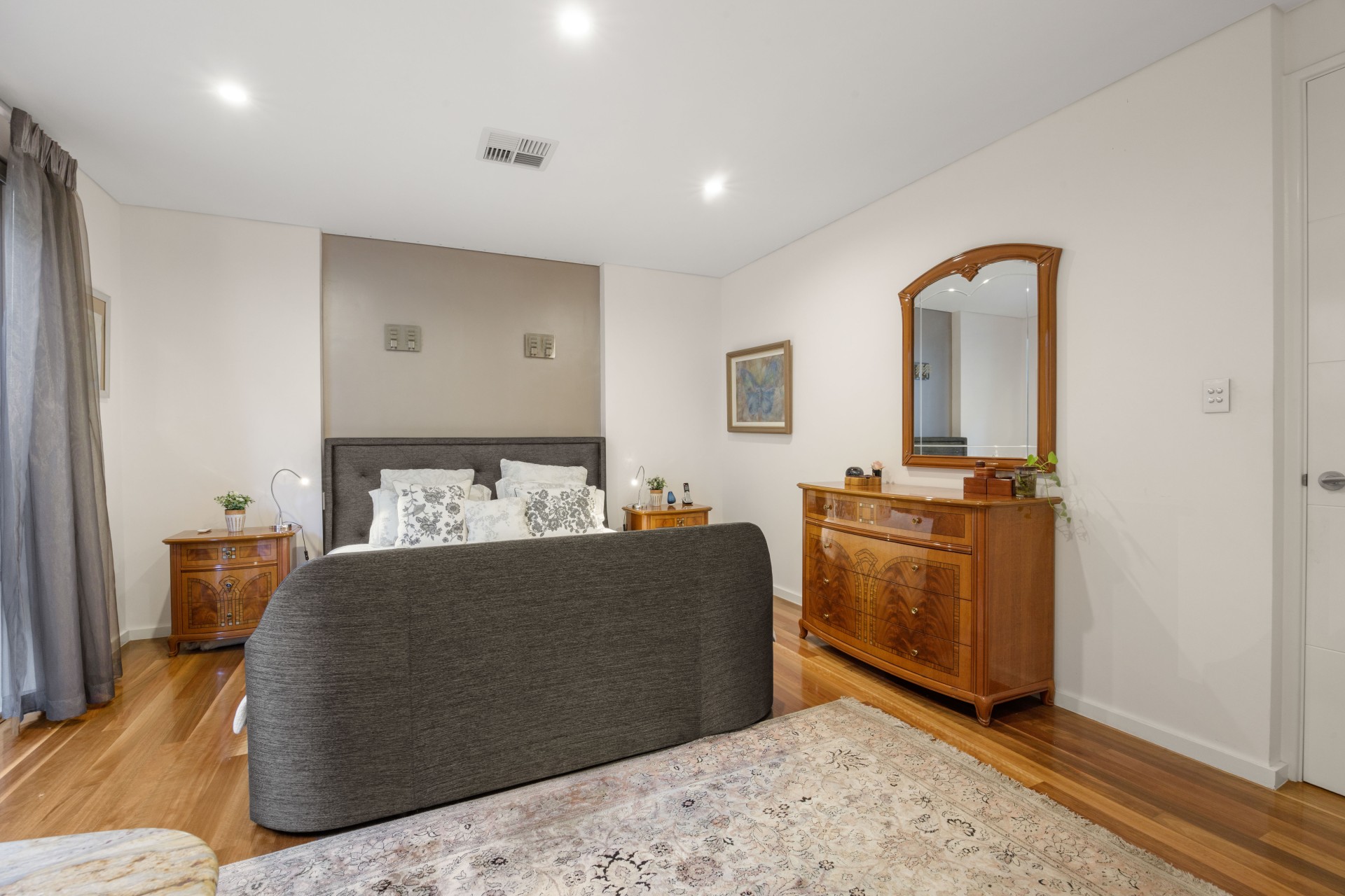 Double brick walls with steel columns attached to the Steel roof frame, electric blinds, and a new commercial hot water heat pump by "Stiebel Eltron". Ducted air conditioning throughout (including the garage), electric gate and intercom, an ethanol fireplace, spotted gum timber floors some with Jarrah inlay, Jarrah painted white skirting boards, Fully fitted dressing room, Fully fitted Study/home office.