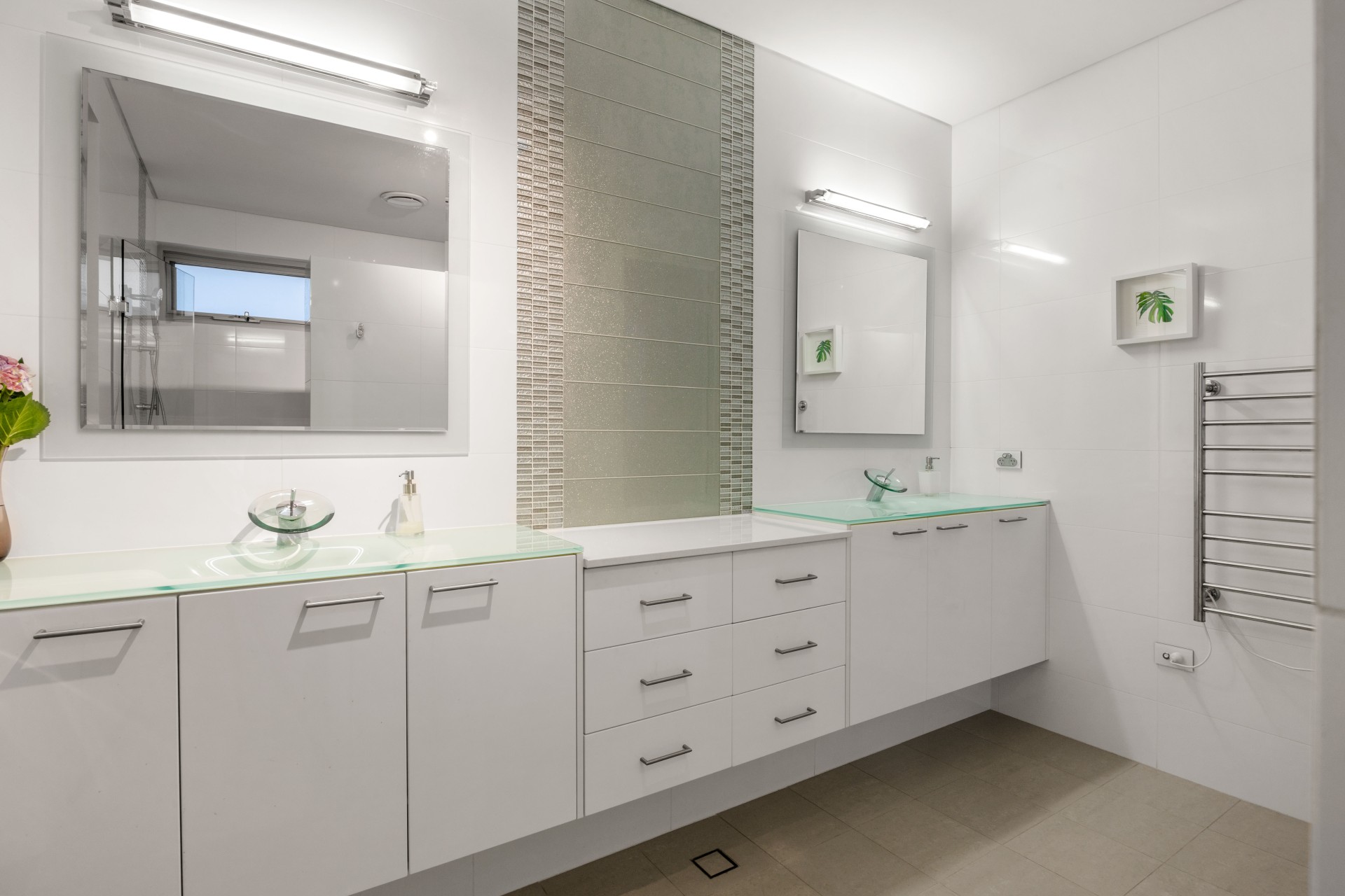 Full height tiling in all bathrooms, Ducted vacuum, Shadow line ceilings, cavity doors, 3 phase power, 5 Kw Solar Panels, and an EV car charger and a pit for car enthusiasts in the Garage.