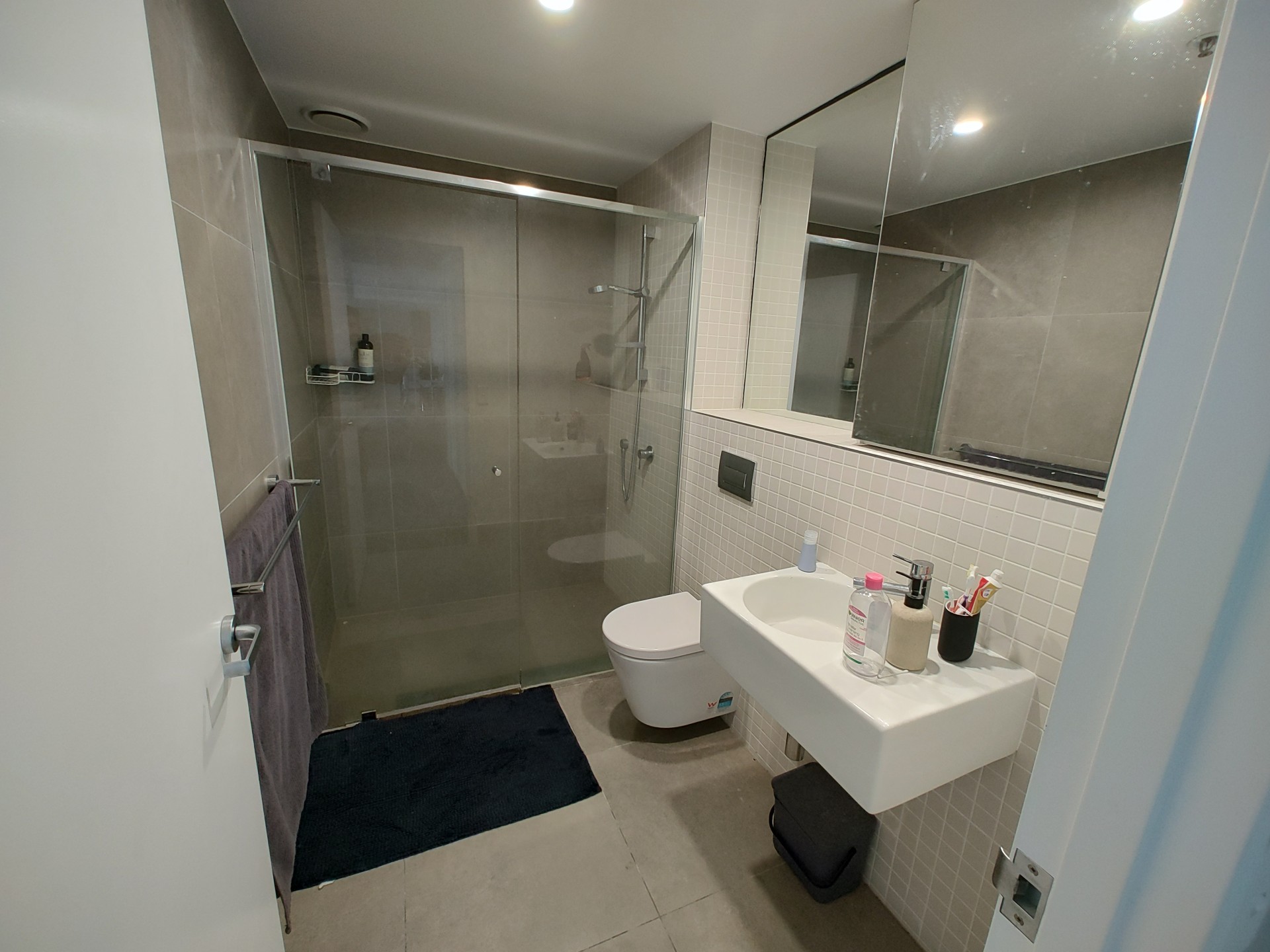 • Modern shower rooms with complete elevation tiling coupled with mosaic function wall surfaces