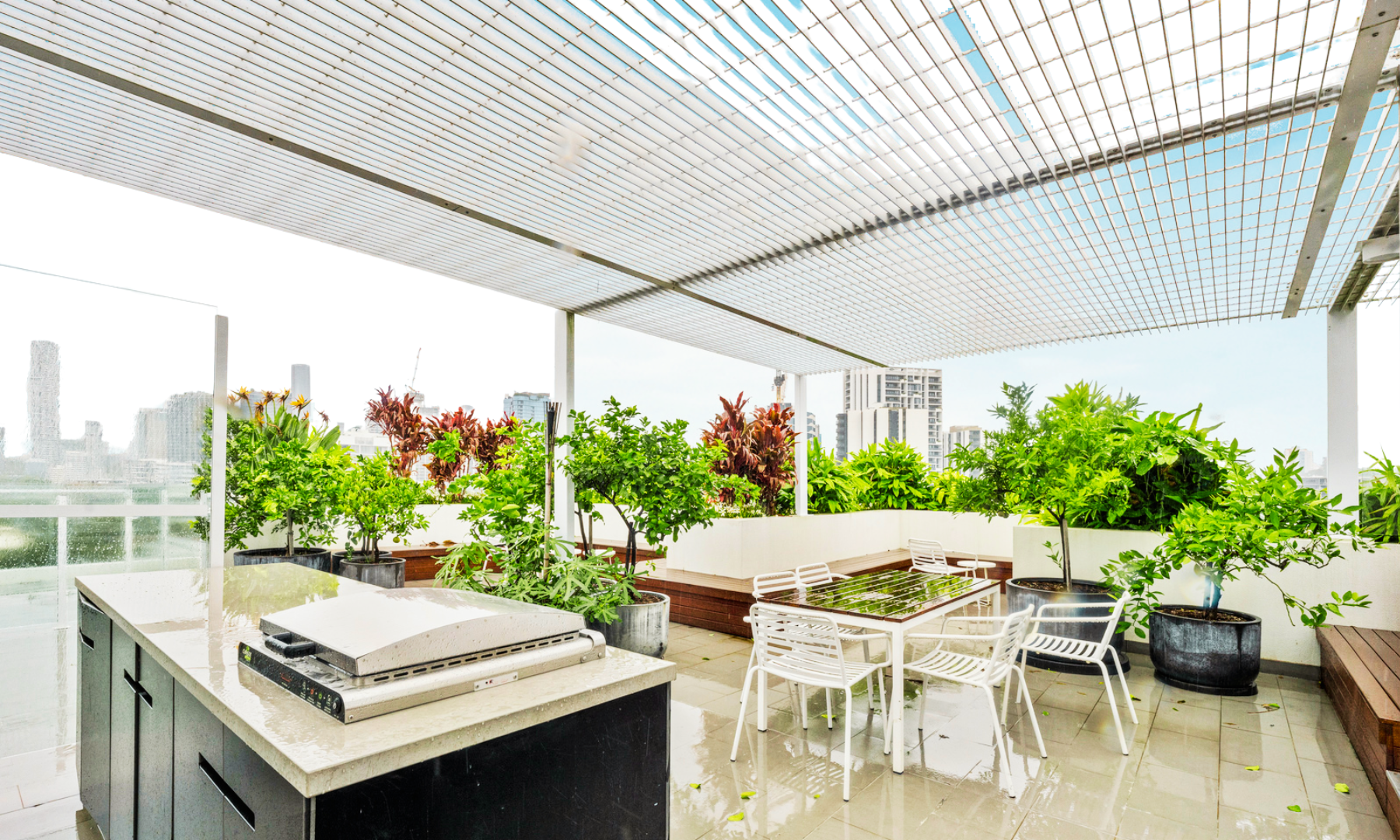 Communal rooftop terrace with BBQ facilities, perfect for alfresco dining and enjoying panoramic city views.