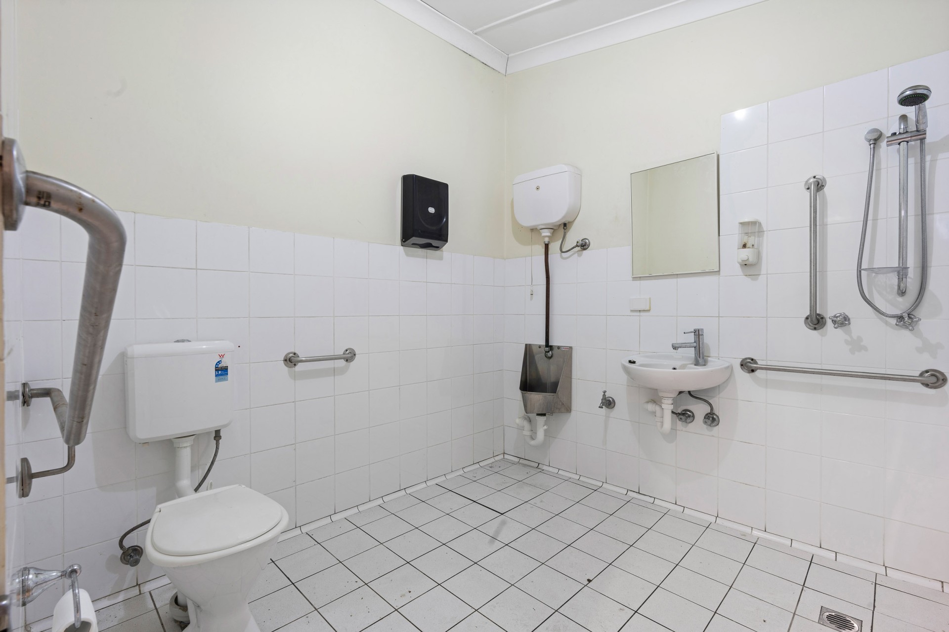 Functional floor plan with spacious kitchen, canopy exhaust, grease trap, cool room, dry store, accessible M/F amenities, and air conditioning.