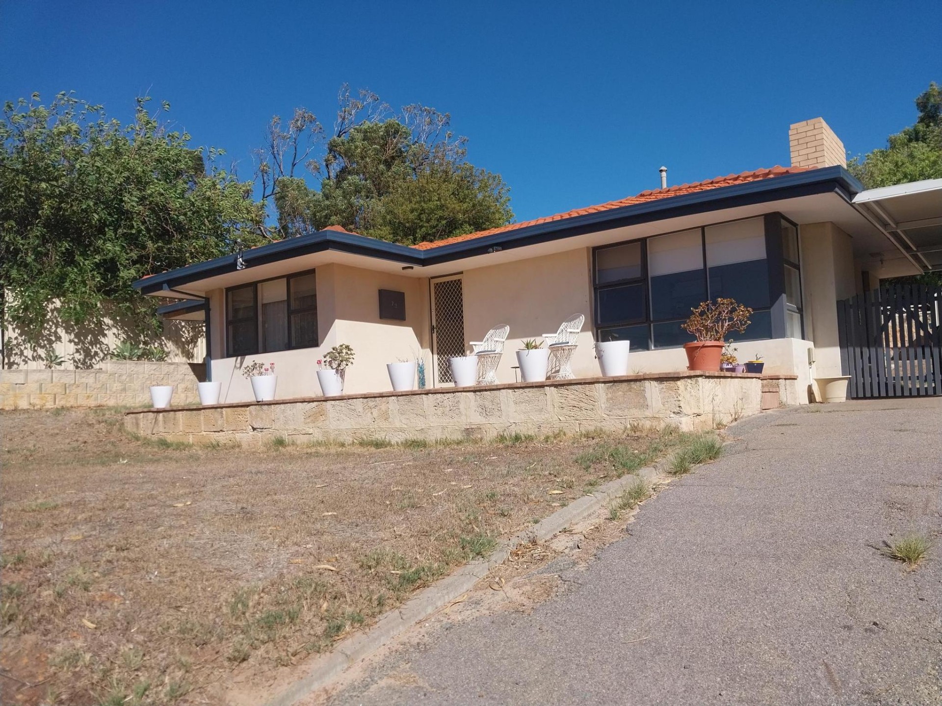 There are no neighbours opposite, just green space, At the end of Ainsworth Street, is a short 'cut though' from Phelps Street to the Northwest Coastal Highway. With retic in place and major retaining walls at the back and the front, there is not much to do here, except move in and enjoy! The house is bordered by colorbond fences, a new shed and hills hoist in the back corner. You have complete privacy, with no-one able to look onto the house from all four sides.