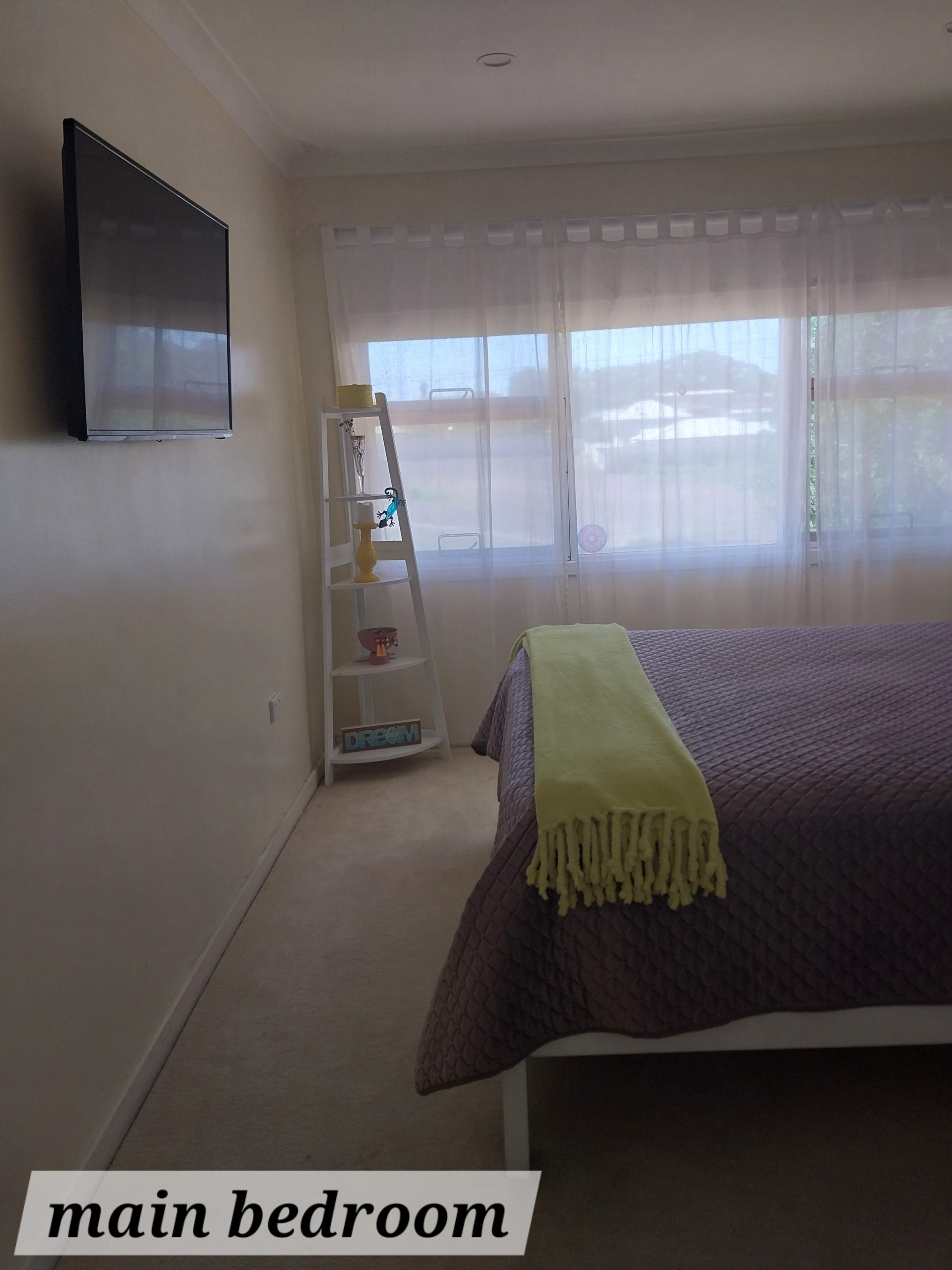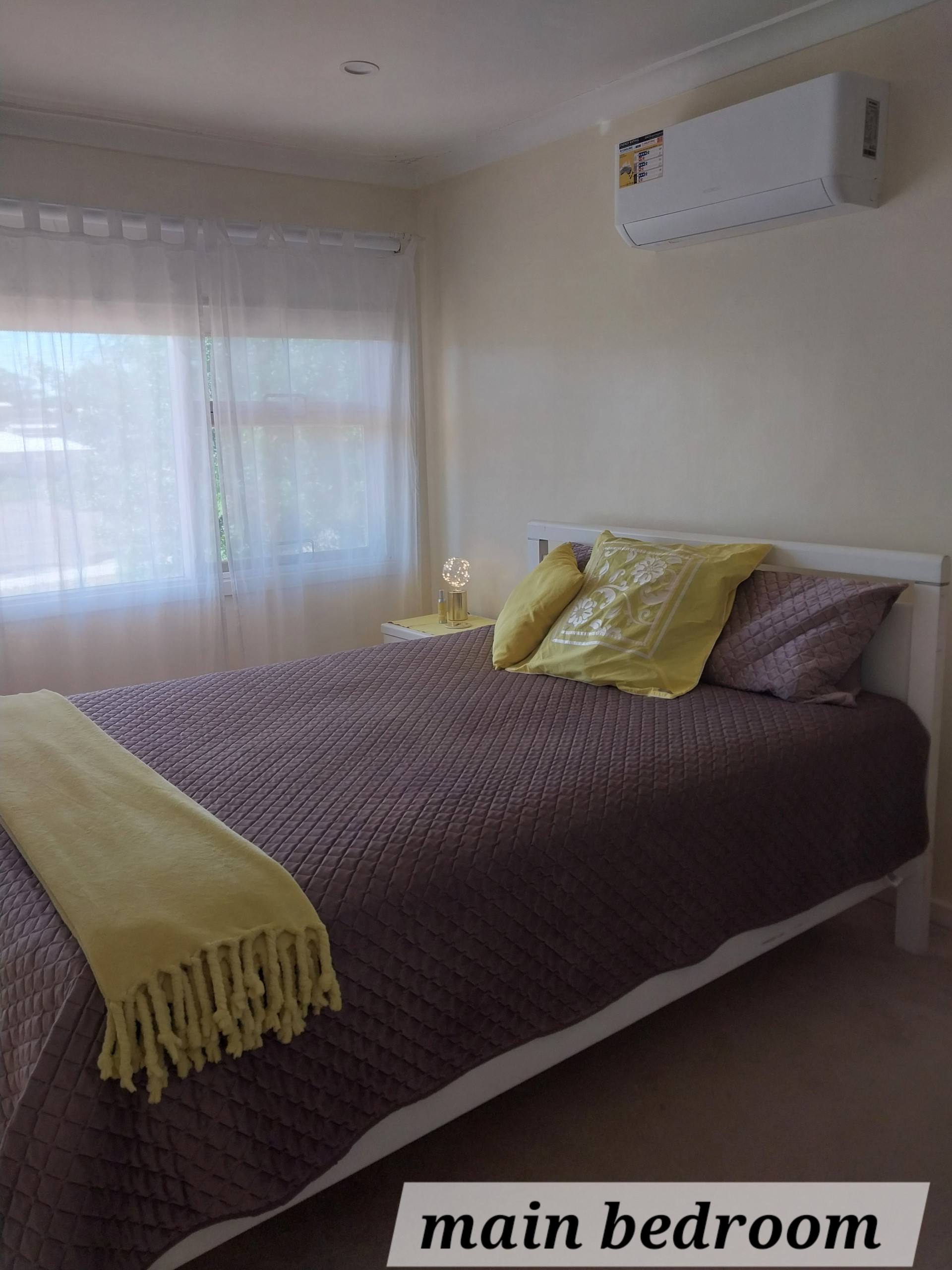 The master bedroom has air con with neutral coloured carpet in all 3 bedrooms in excellent condition, replaced only two years ago.
