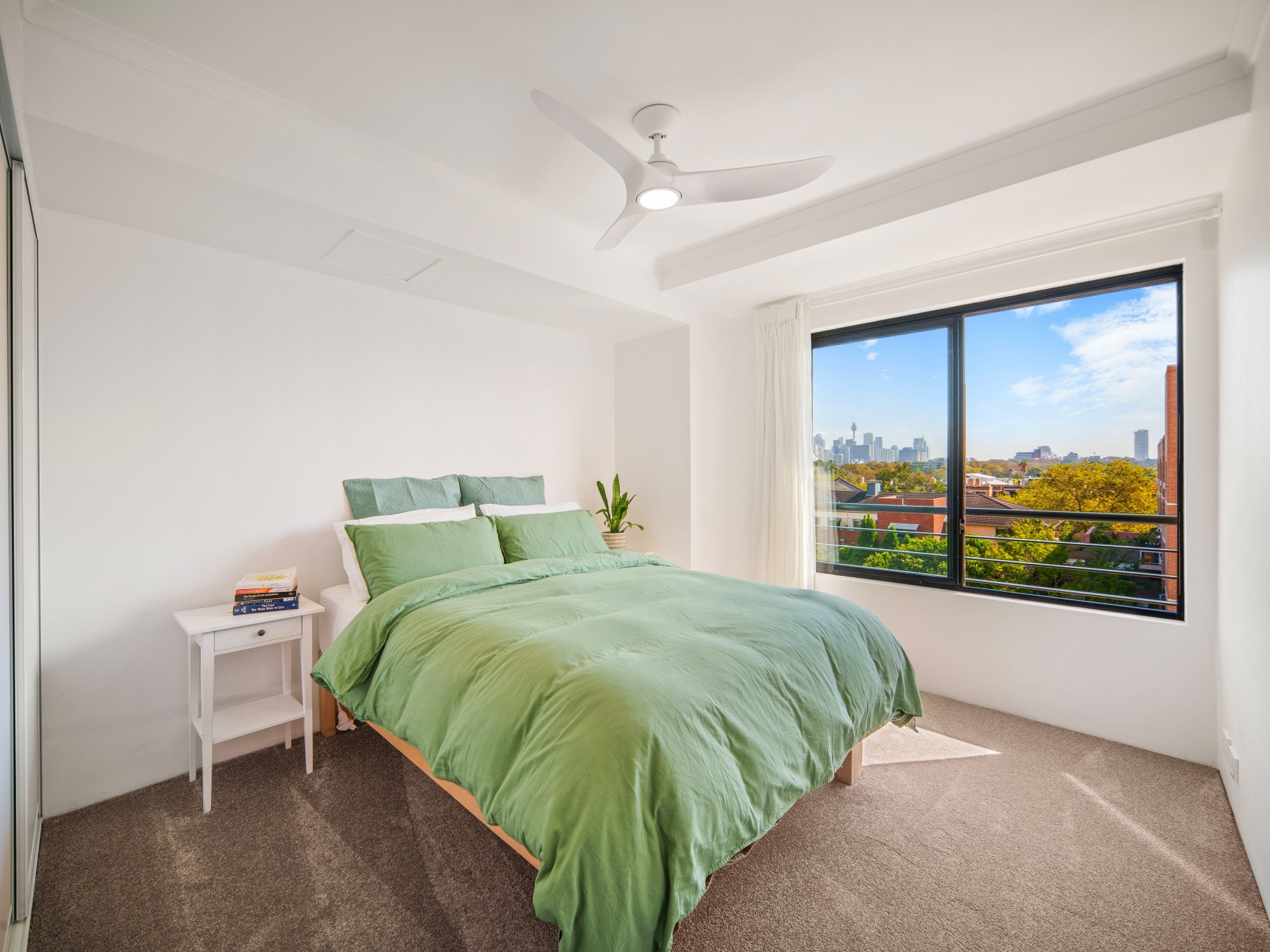 • Bright bedroom with built-in robes, and views of the city