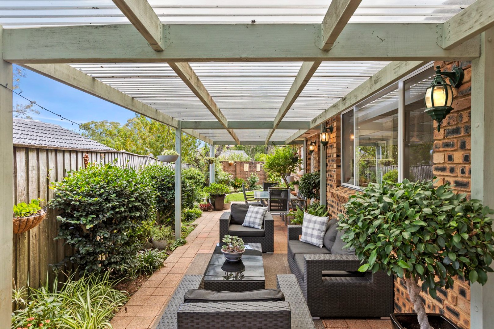- The front of the home has a large level lawn area, beautiful gardens and auto double garage. The house has multiple outdoor areas (including an undercover entertaining area) which makes it perfect for indoor-outdoor living.