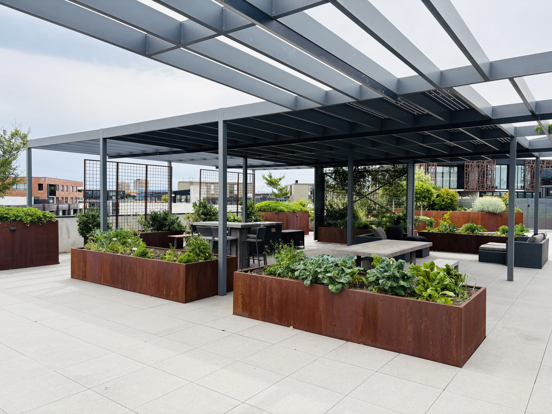 - Large roof top gardens incl BBQs