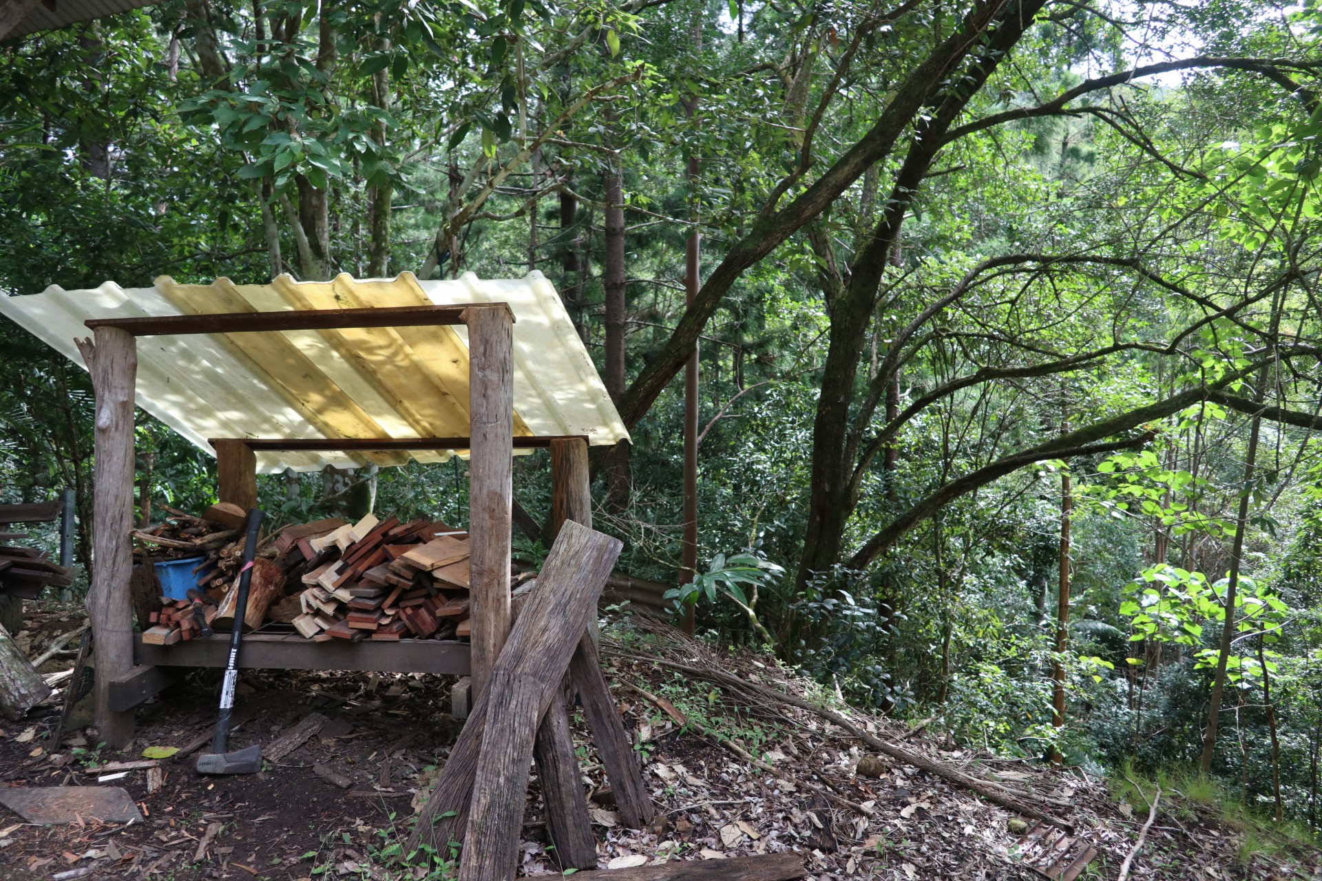 The land has several cleared sites, and the house is roughly north orientated, so there is plenty of sun to be had in winter, but cool shade in summer. There are several existing productive raised garden beds amongst the hand made stone walls.