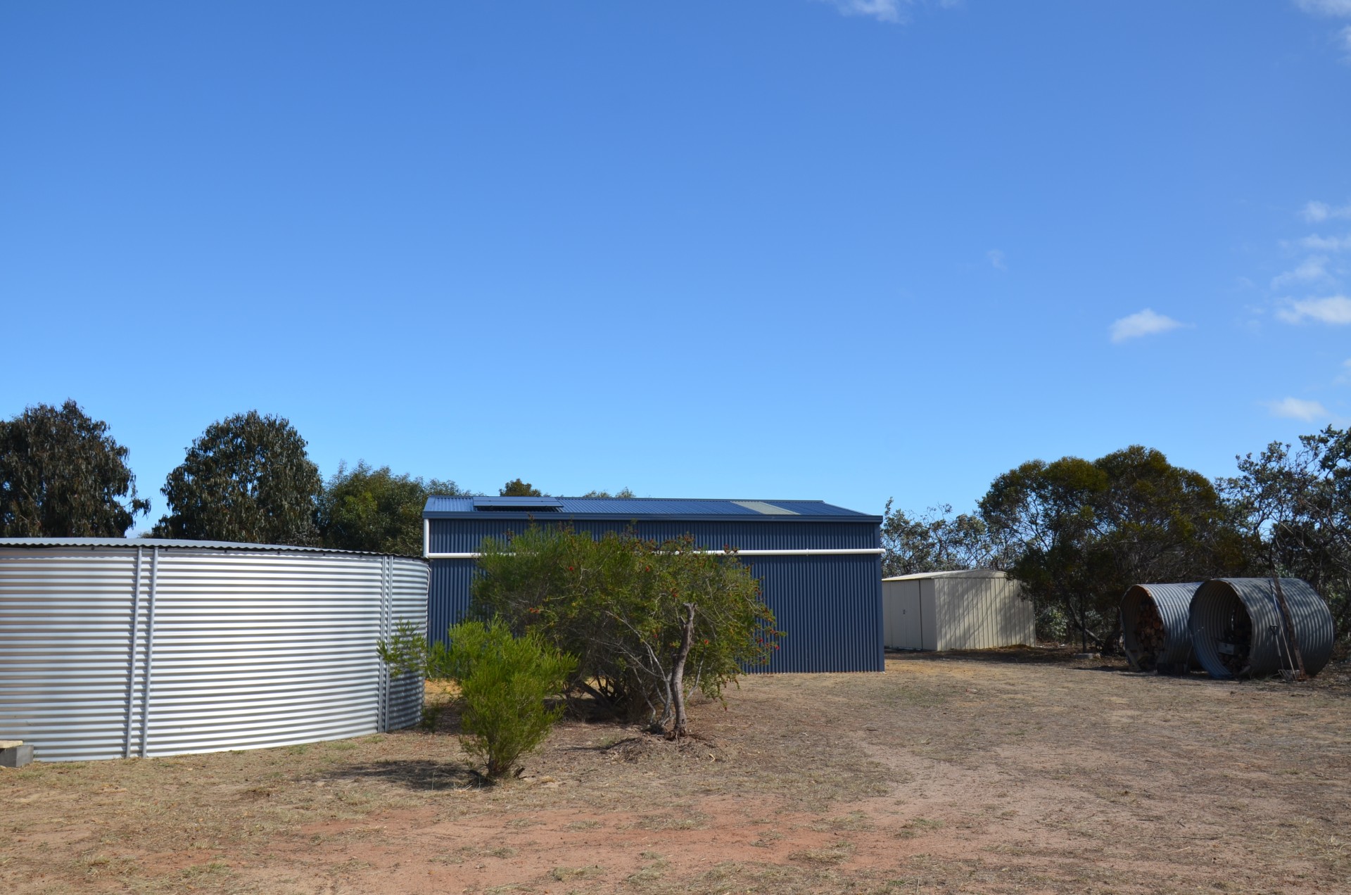 Additionally, the property includes a powered remote two-bay garage (7.5m x 9m) with Merlin controllers and remote access via your phone. The garage (3.7m x 9m) on a concrete slab has a lean-to with a spacious rear divided section which is lockable and contains an office room with loft for extra storage. With over 111,000 litres of water storage already connected, this property ensures ample off grid water supply.