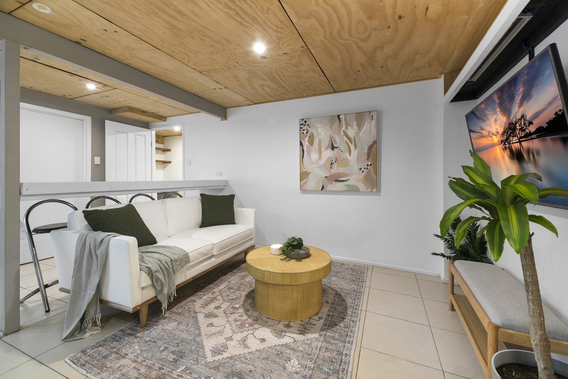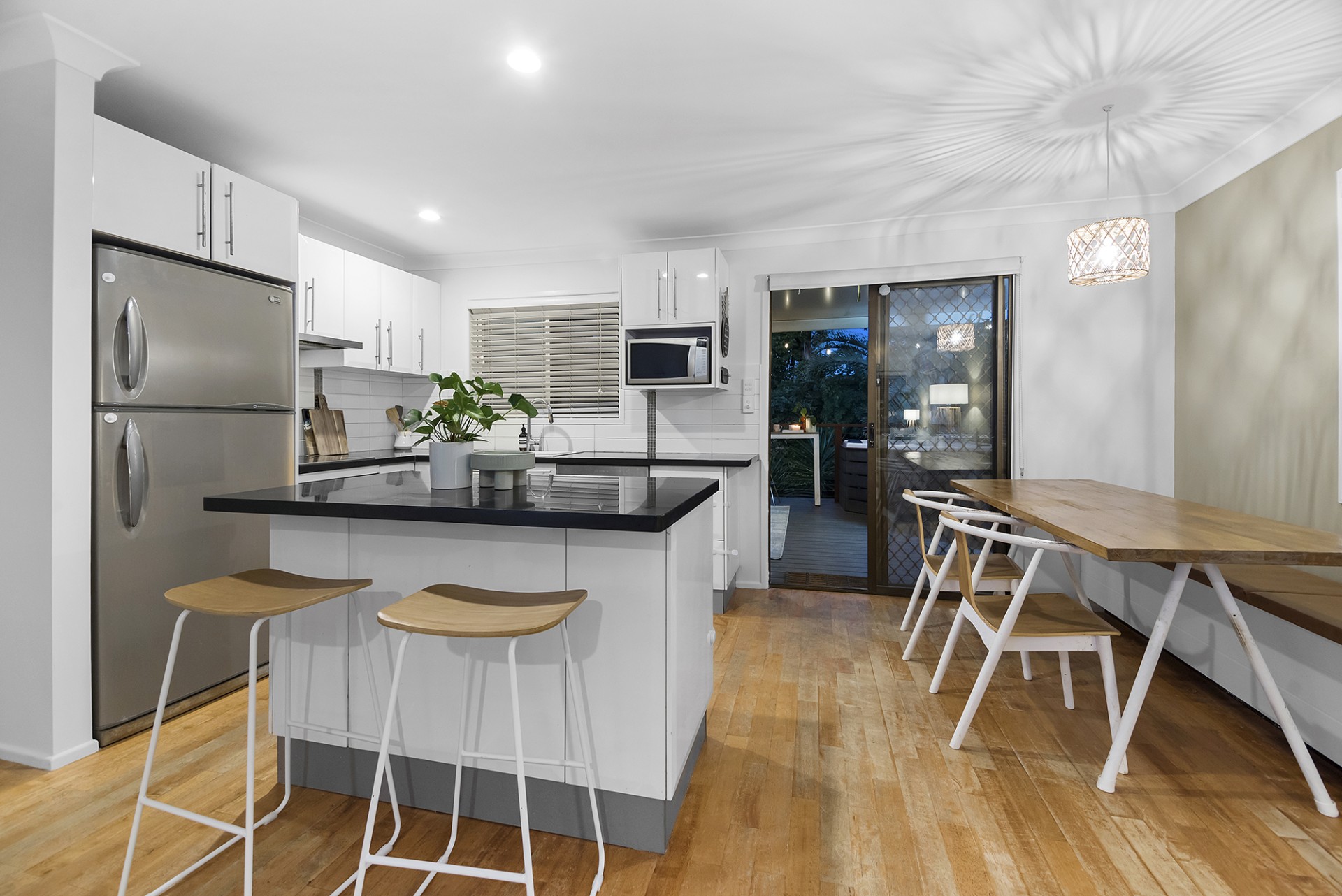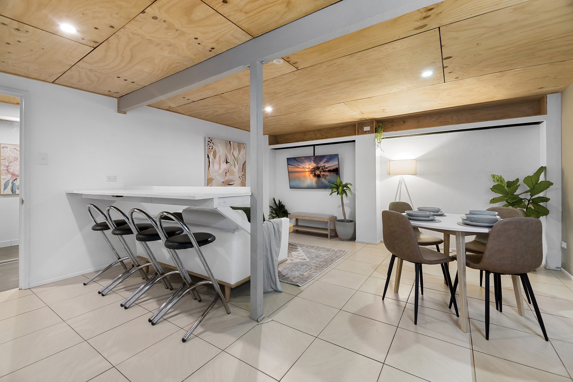 - Open plan kitchen, breakfast bar, and rumpus