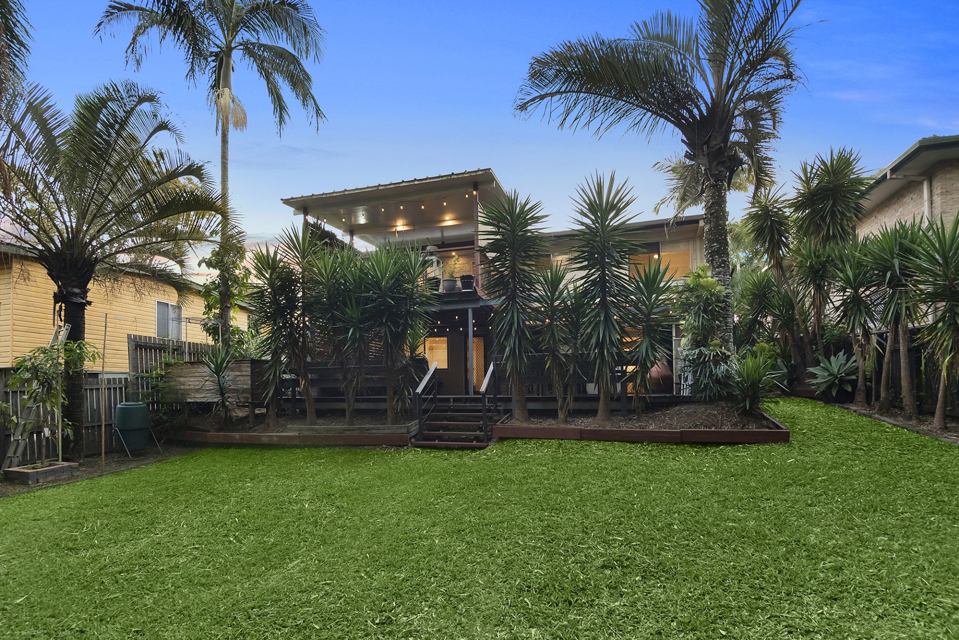 - Easy-to-maintain established gardens featuring beautiful palms, fruit trees, and bamboo