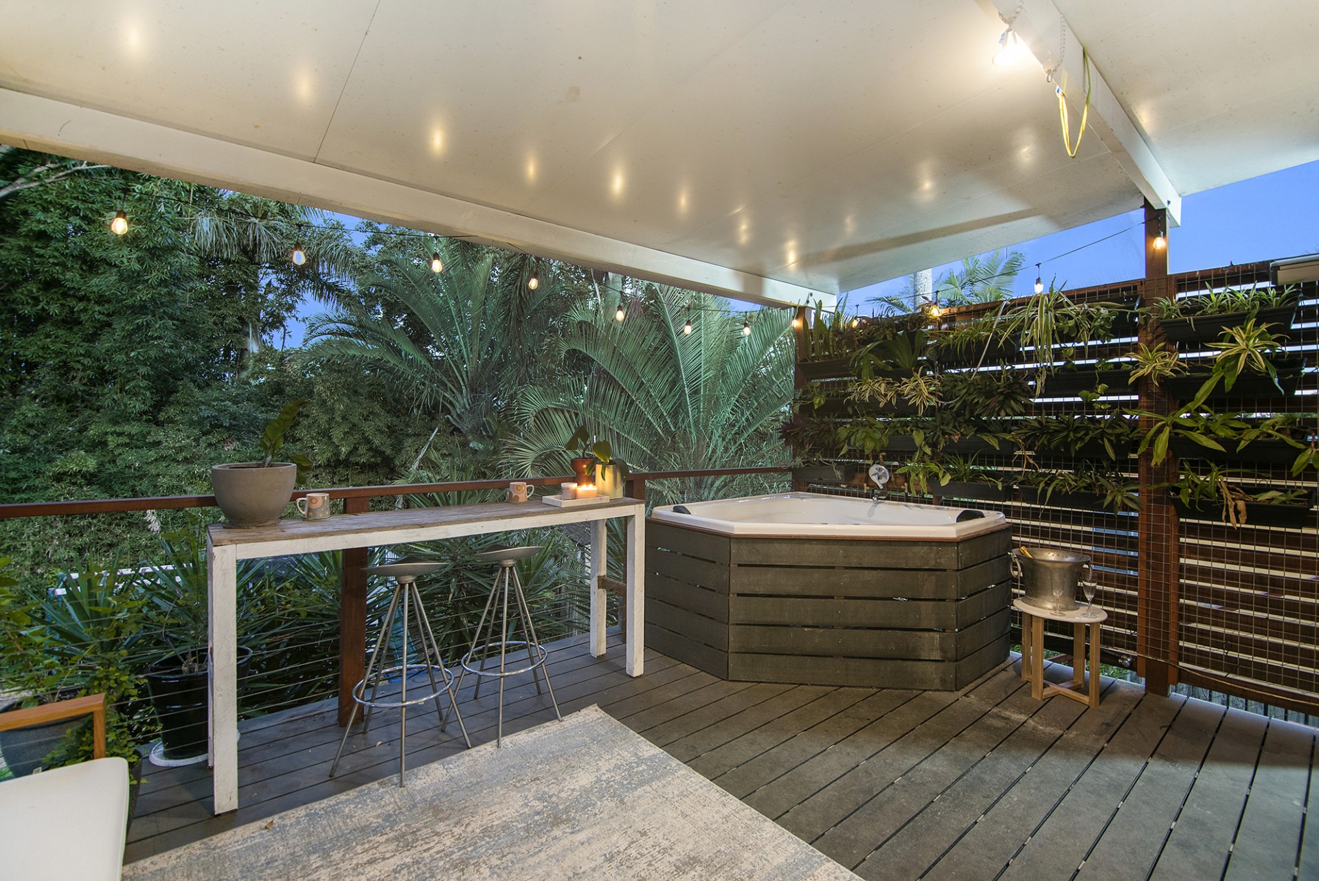 - Large deck with built-in outdoor spa bath