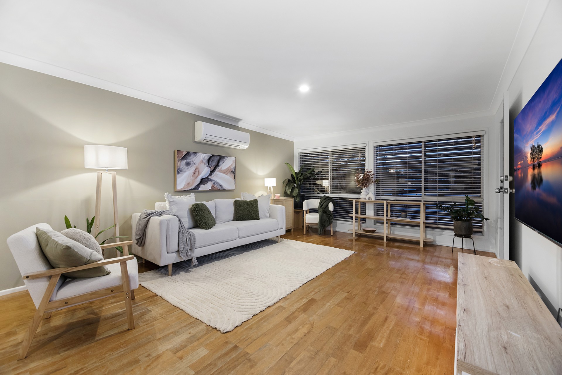 Stay comfortable year-round with split cycle air conditioning throughout, while the 6.6-kilowatt solar power system maximises energy efficiency.