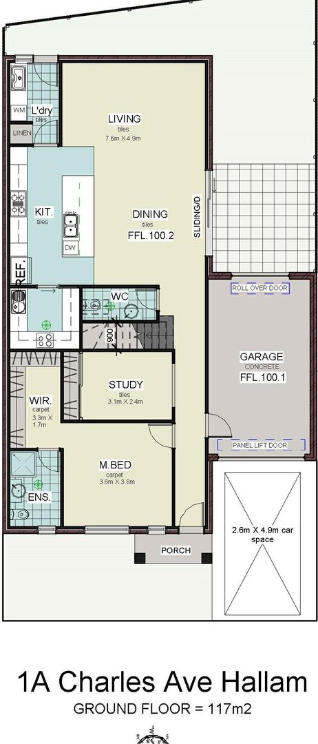 Step inside to discover a spacious downstairs area featuring a master bedroom with walk-in robe and ensuite bathroom, a study room for productivity, ample storage space including an under-the-stairs storage area, and a modern open-plan living, dining, and kitchen area equipped with high-quality appliances.