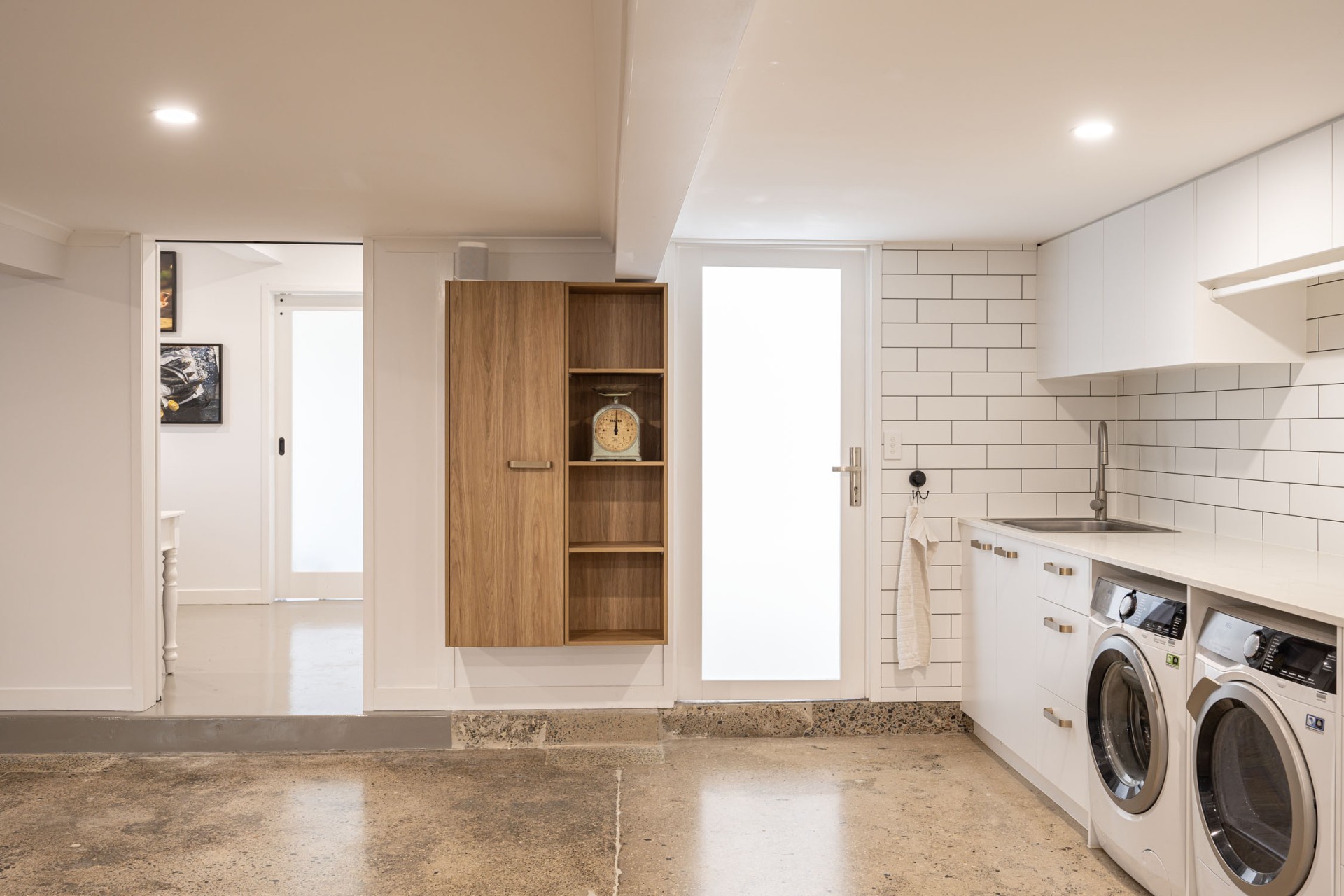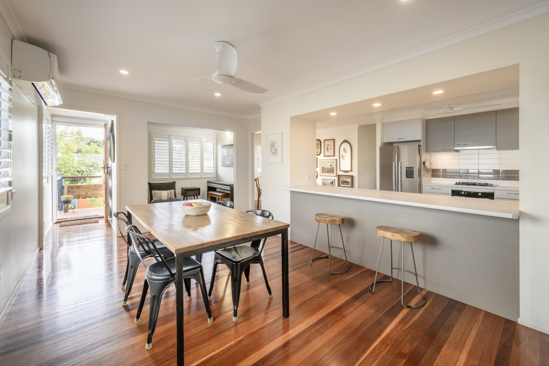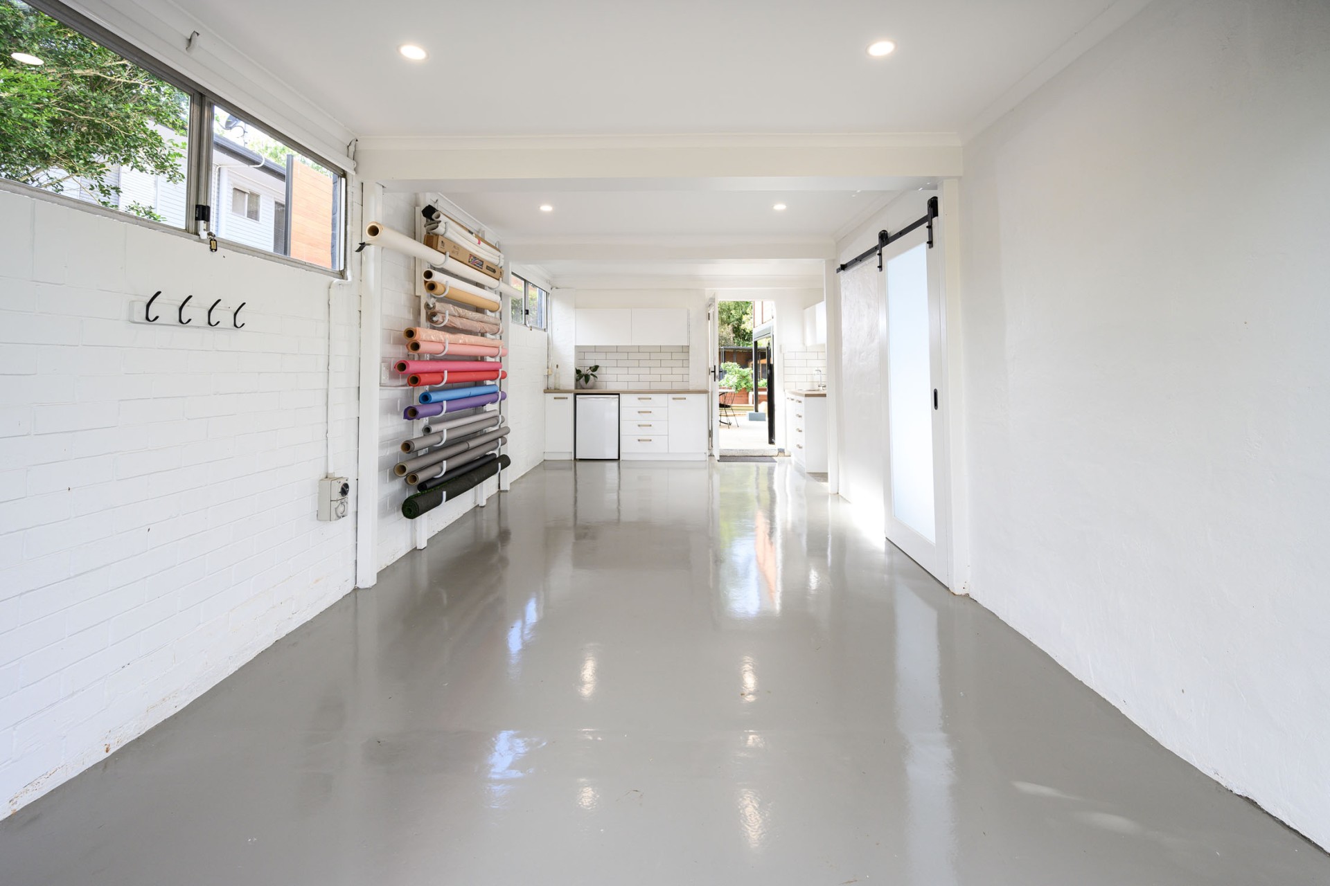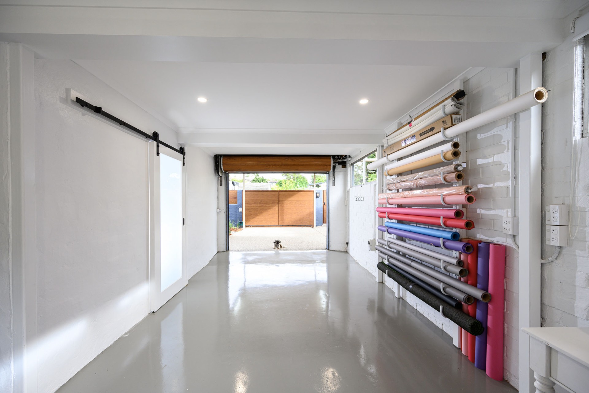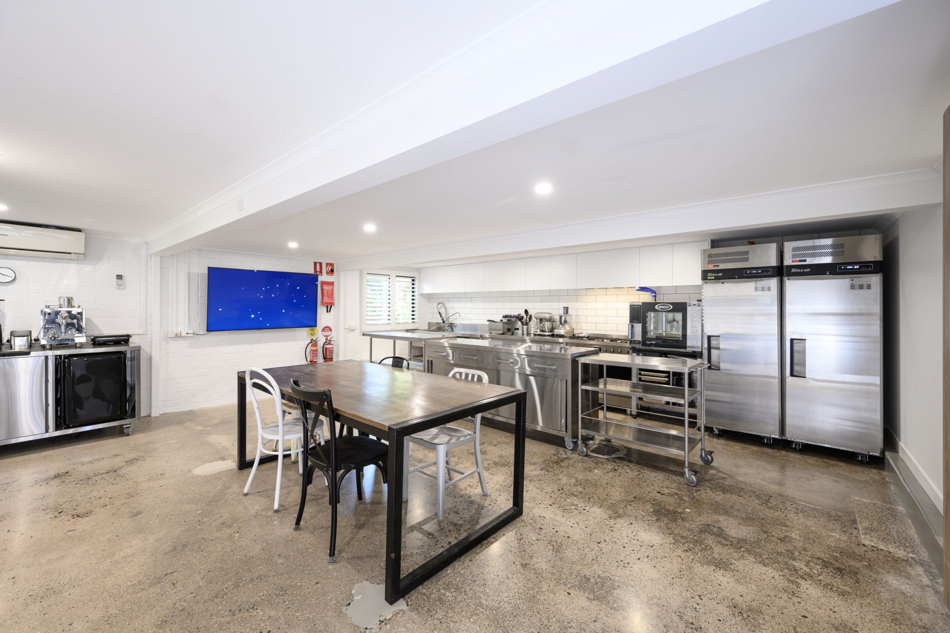 Flowing from the garden into the lower level, you'll find a versatile space currently utilized as a food photography studio, complete with polished concrete floors, white brick walls, and a full commercial kitchen with 3 phase power. Additionally, there's a fourth bedroom, fully renovated bathroom, and a single garage with a bar area and utility space, providing easy access to the garden and entertainment area.
