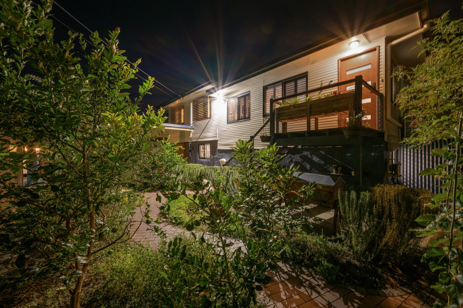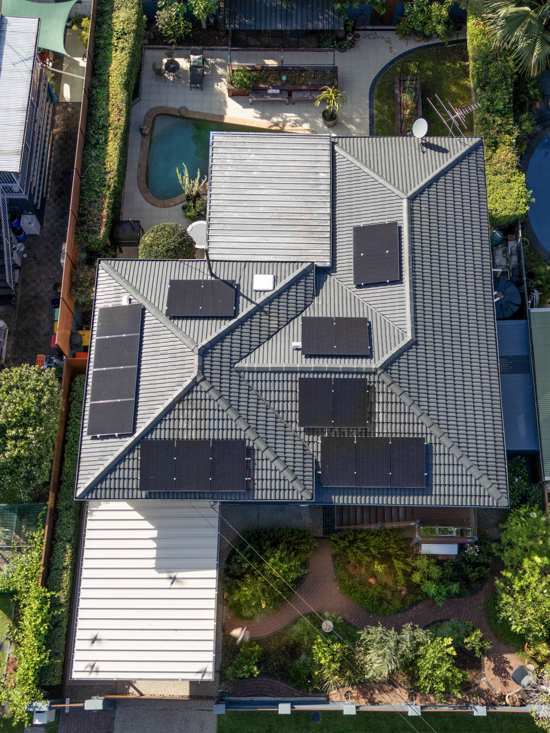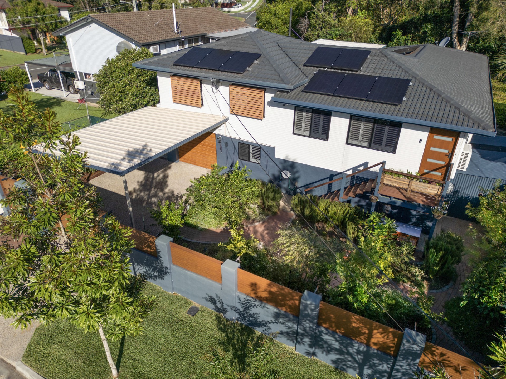 Venture further around the corner to discover a double-doored, powered 5 x 2.8m man-shed equipped with shelving and a shadow board. Adjacent to the shed, a 10,000-liter water tank serves the upper deck and surrounding yard, facilitating easy access to potting needs at the designated potter's corner. The landscaped yard features a 40000lt pool, raised veggie beds, and an under-deck entertainment area to enjoy a firepit or pizza oven, and a luxurious outdoor bath and shower for ultimate relaxation.