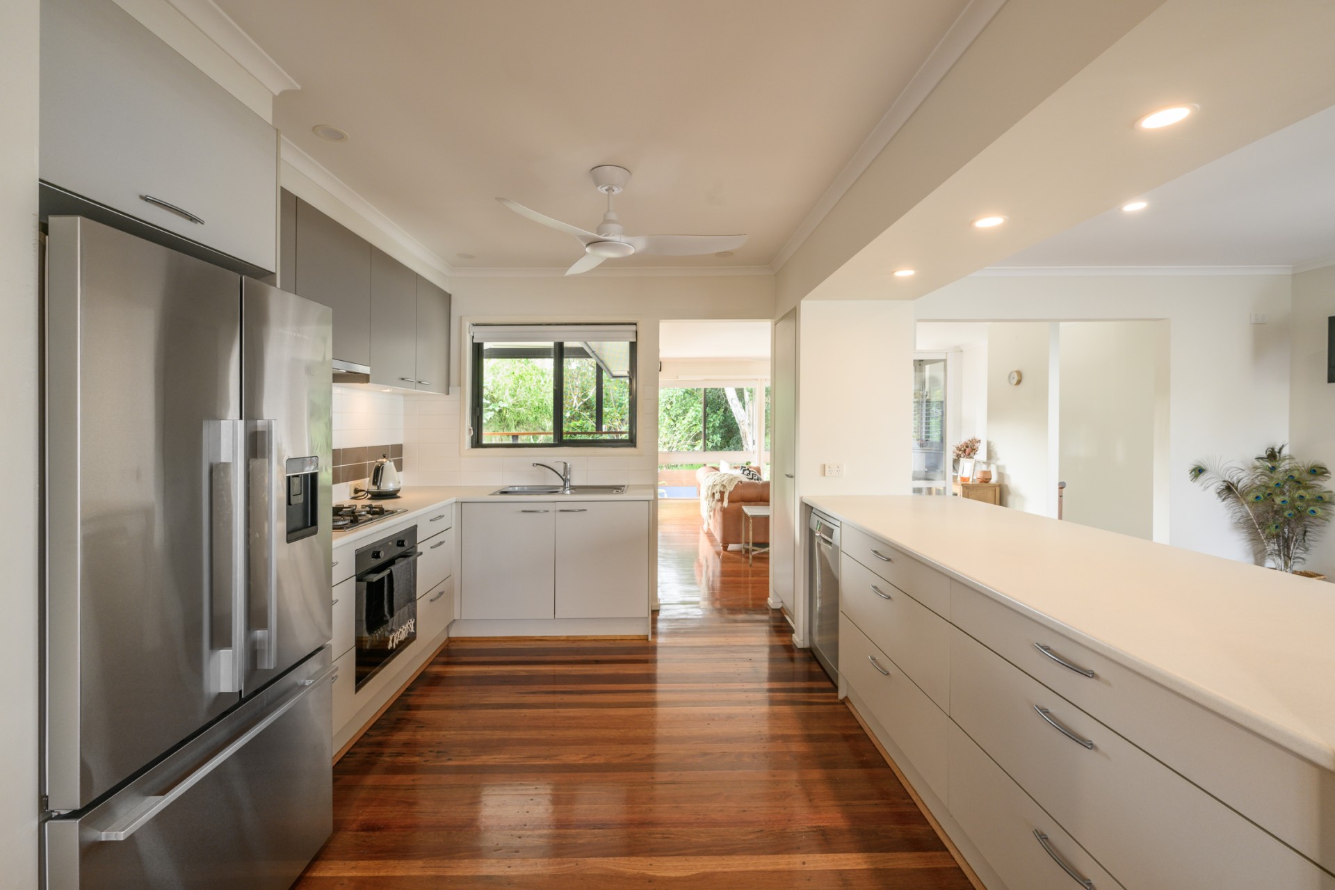 The spacious kitchen offers ample storage, new Bosch dishwasher and gas cooktop. The kitchen is truly the heart of this home. Adjacent is a beautifully lit lounge area with floor-to-ceiling glass windows offering scenic views of the lush parklands. Step out onto the expansive deck, perfect for morning sunrise views and birdwatching.
