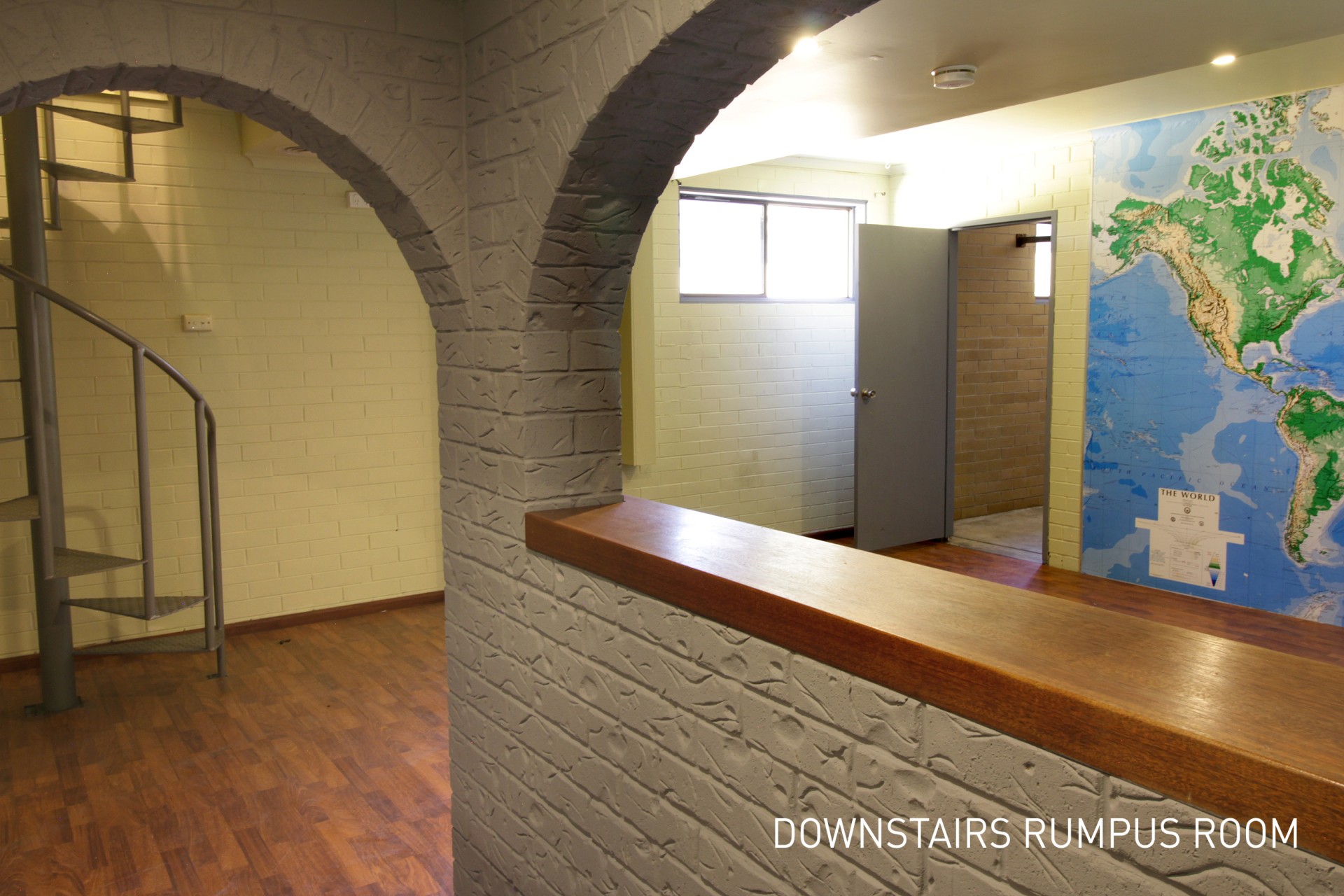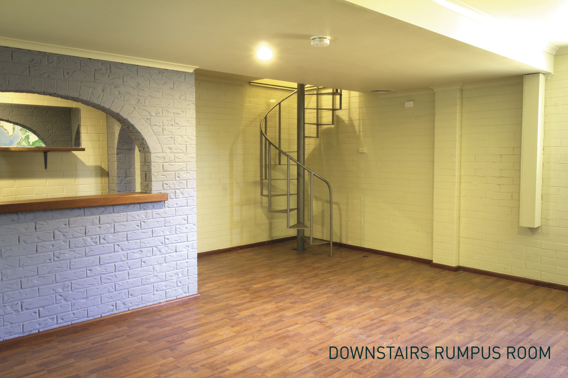 • Downstairs is reached via a spiral staircase and features a large rumpus room with bar area, connecting to the double garage. The garage has a brand new roller door.