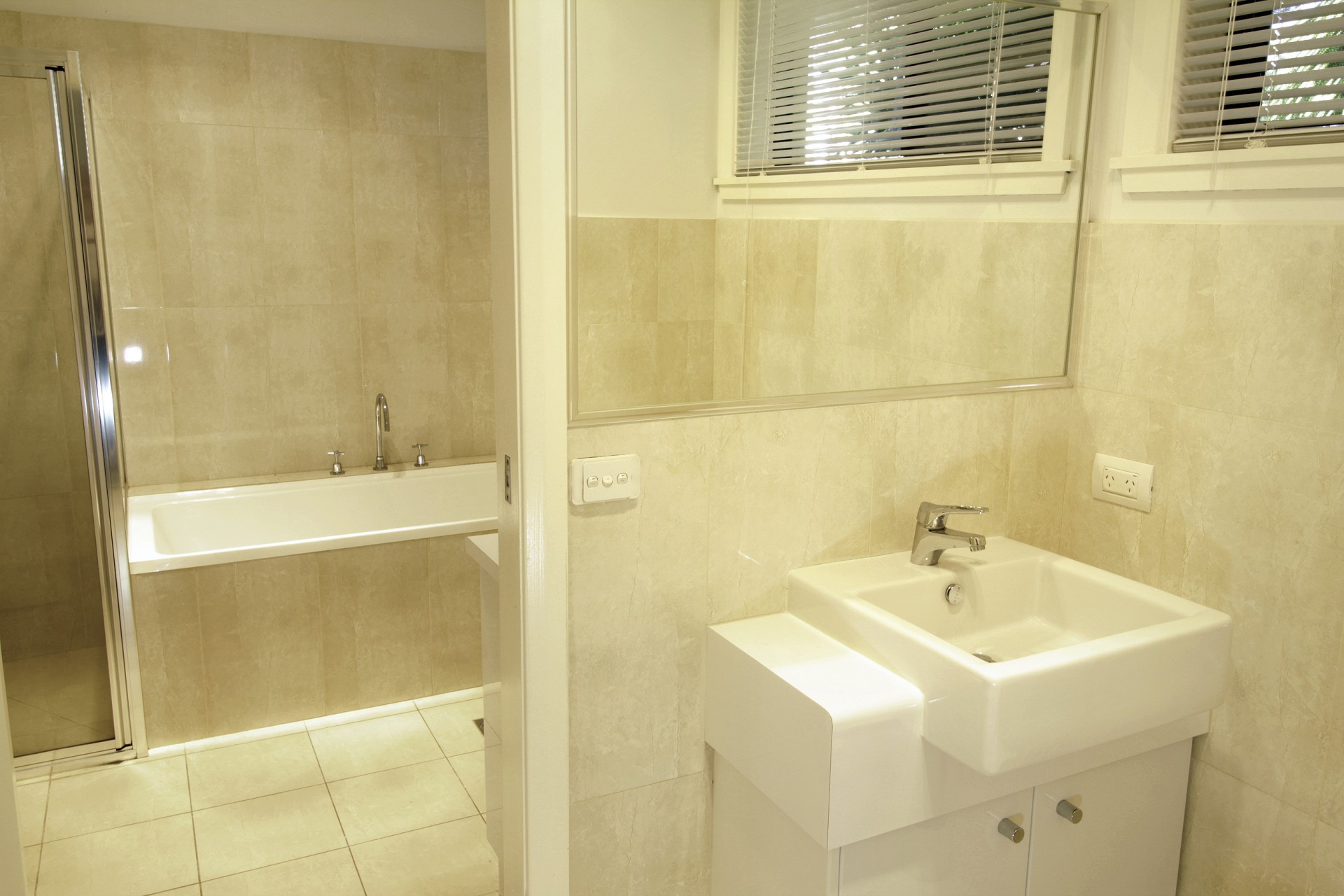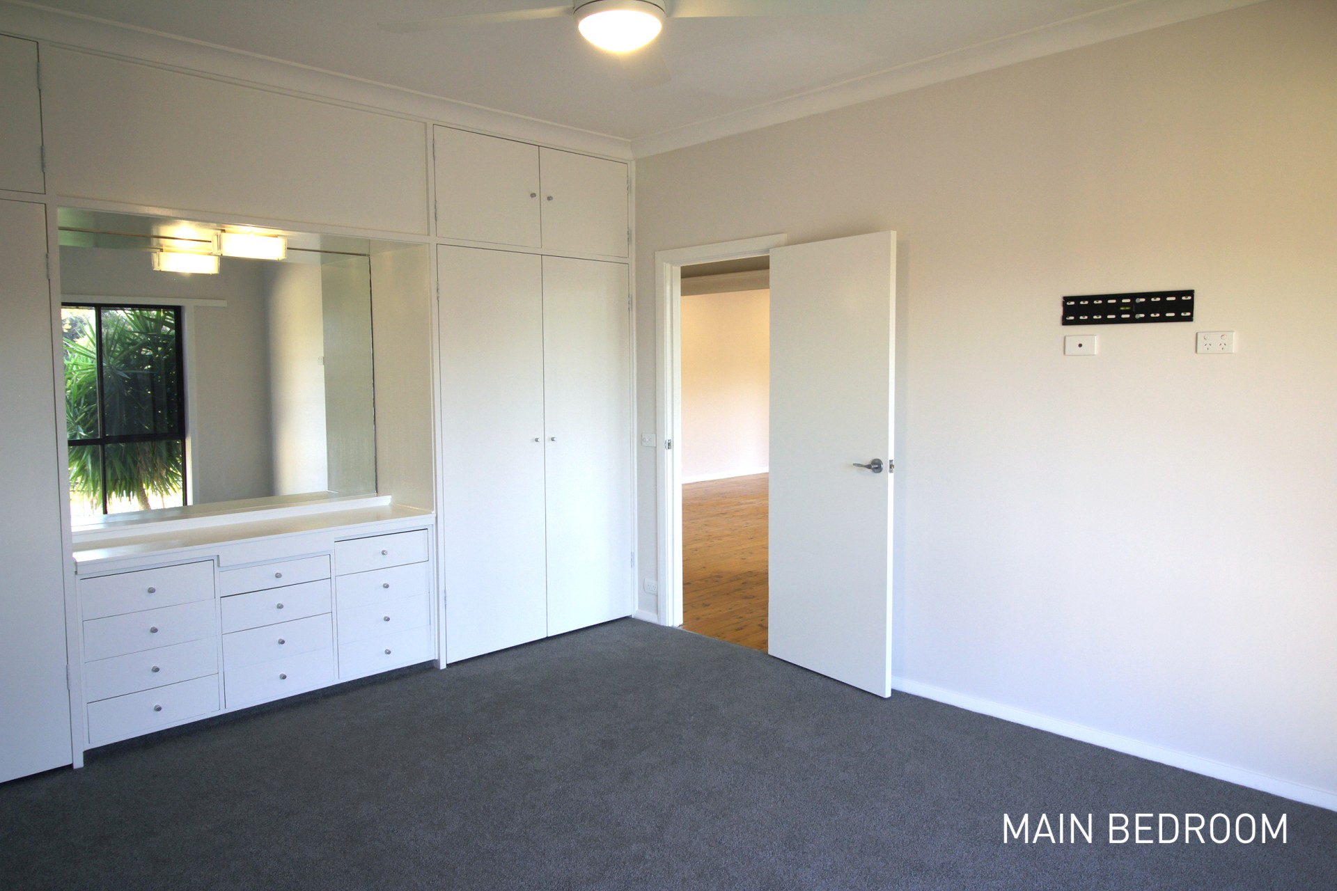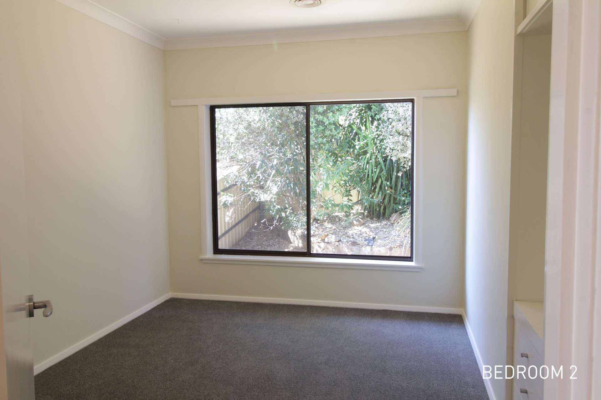 • Three generously sized bedrooms with new carpets and built-in wardrobes. The main bedroom faces the street while the other two face a rockery courtyard area.