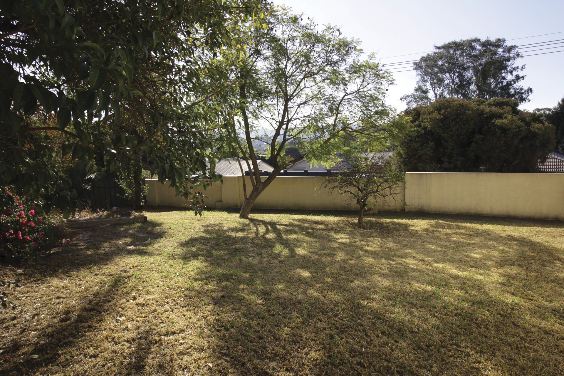 • A secluded garden area features secure gates, a new foldable clothesline, a nice outlook over neighboring properties and distant hills, some established trees and potential to build an outdoor entertainment area.
